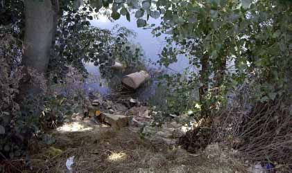En el entorno del puente de la autopista y especialmente en la margen izquierda, en las orillas se encuentran escombreras con fuertes taludes y extensos bancales frecuentemente inundados, donde se desarrolla una delgada banda de sauces y chopos de pequeño porte, limitada por áreas degradadas y caminos.