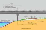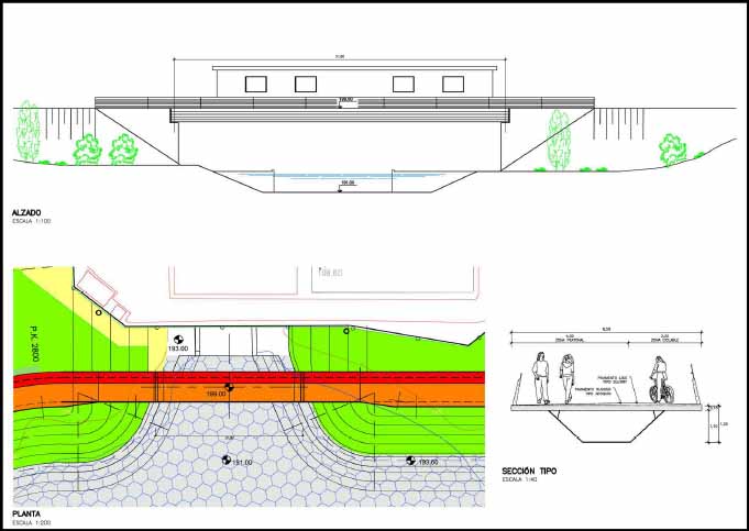 En la zona del entorno del puente de la autopista se prevé la conexión de ambos y del carril bici, tanto con los caminos actuales de acceso al cauce como con el camino que continúa río arriba por la margen derecha.