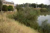 Se trata de una franja de margen muy estrecha limitada por zonas de huertas en su tramo inicial, el Club Deportivo Ebro en su tramo intermedio y la casa de bombeos en su tramo final. Realizaremos una descripción de la actuación desde aguas arriba hacia aguas abajo, es decir, desde el entorno del puente de la autopista hasta unos 400 m aguas abajo de la casa de bombeos..