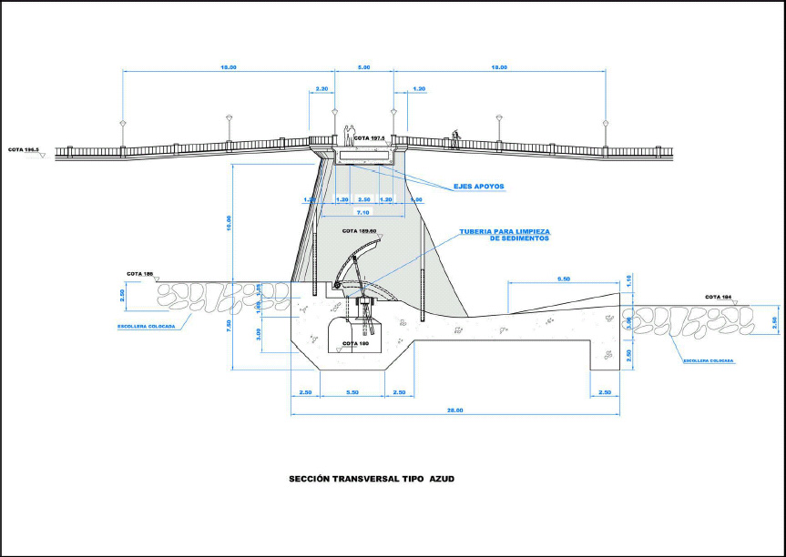 Cabe destacar las siguientes características del azud proyectado: