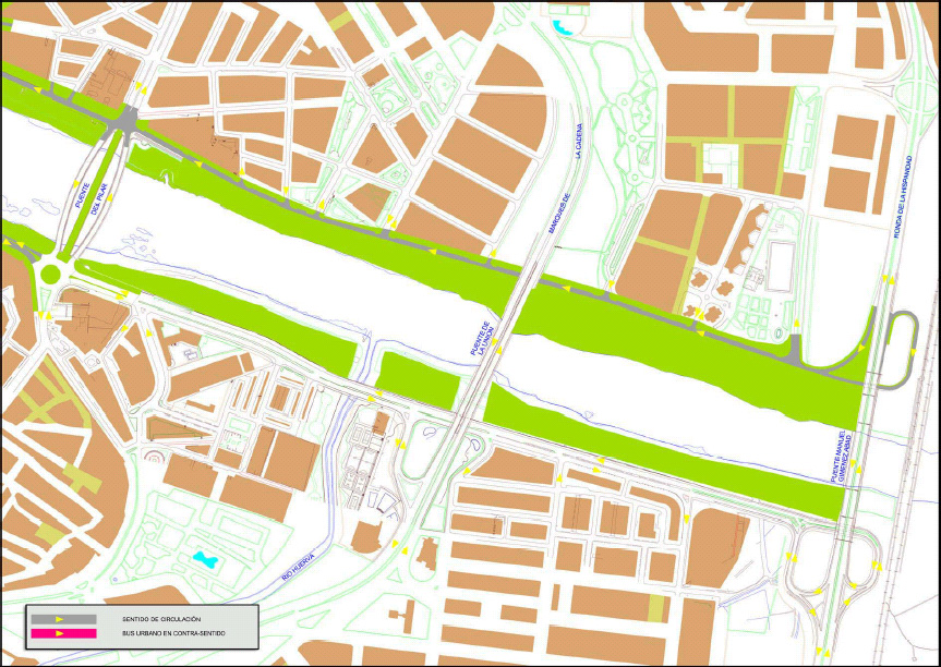 - SENTIDO ÚNICO DEL TRAFICO EN Pº RIBERA (en contra del agua).