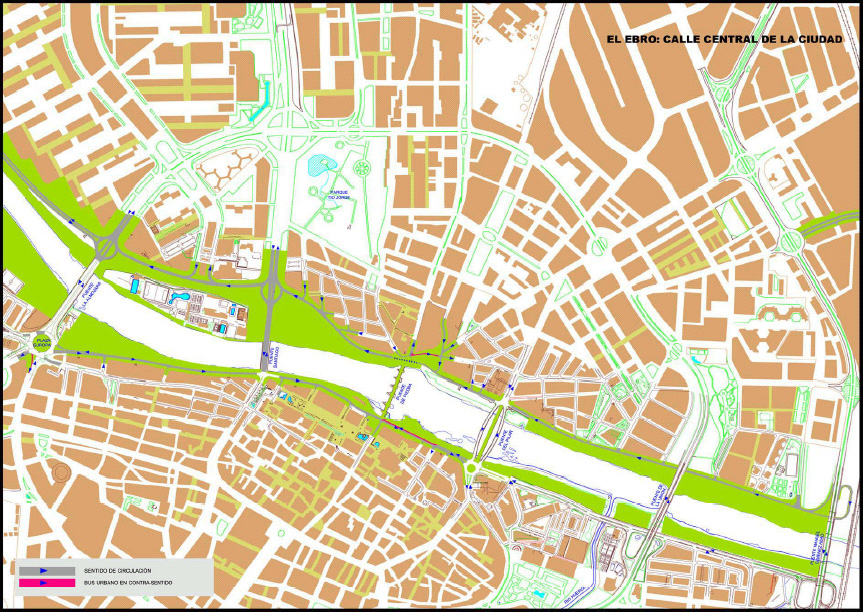 - Ampliación de espacios peatonales en las fachadas del Ebro, con aceras de 5,00 a 9,00 m. de anchura en Paseo Echegaray y Paseo de Ribera.