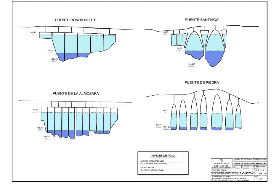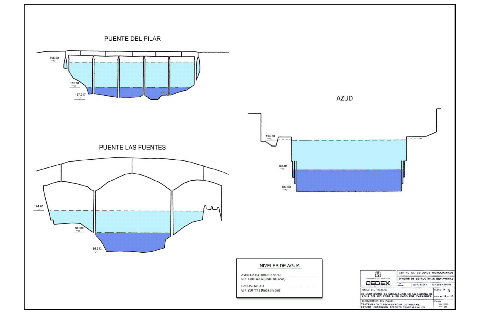 - Estudio sobre estabilización de la lamina de agua del río Ebro a su paso por laciudad de Zaragoza (1977).