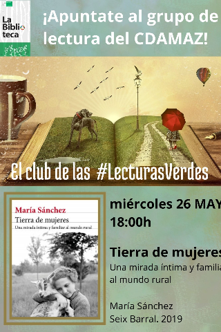 Esta será la segunda sesión del incipiente club de lectura del CDAMAZ. Tras una primera sesión (https://bit.ly/3eDe7HM) centrada en una novela que tenía como hilo conductor el agua y el cambio climático, para esta ocasión el libro elegido es un relato próximo al ensayo: Tierra de mujeres. Una mirada íntima y familiar al mundo rural, de María Sánchez, editado por Seix Barral en 2019.