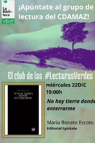 Si te seducen las #LecturasVerdes, la biblioteca facilita el préstamo de 12 ejemplares del libro para quienes se inscriban hasta 15 de diciembre. La sesión, previa lectura del libro, se realizará en la sala de lectura.