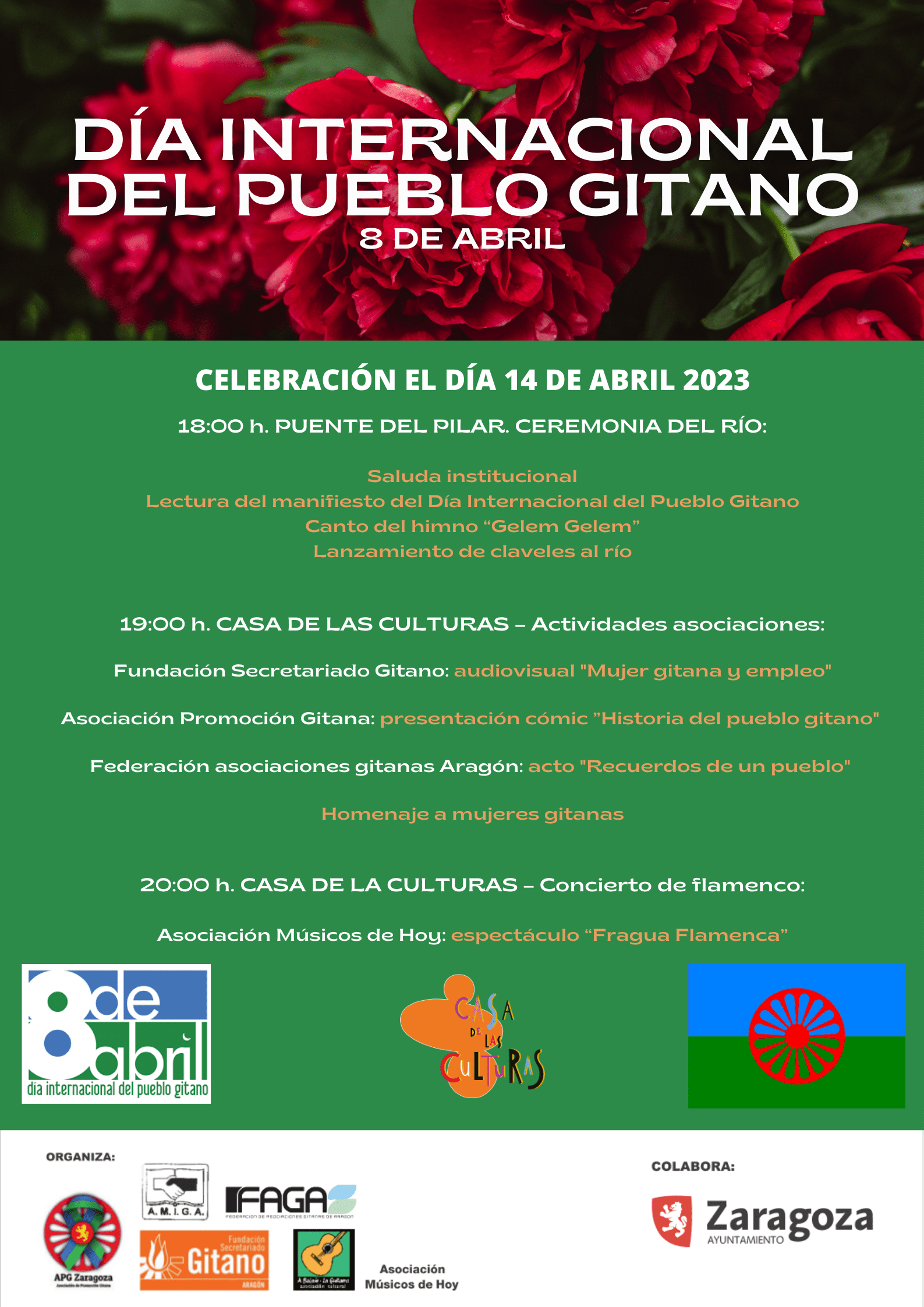 La Casa de las Culturas organiza junto a las asociaciones gitanas de Zaragoza la programación de los actos. Es un día de encuentro y de reivindicación y también un día para hacer llegar a la ciudadanía las reivindicaciones del colectivo haciendo especial hincapié en romper los prejuicios y estereotipos que estigmatizan a las personas gitanas y construyen una barrera para la convivencia intercultural.