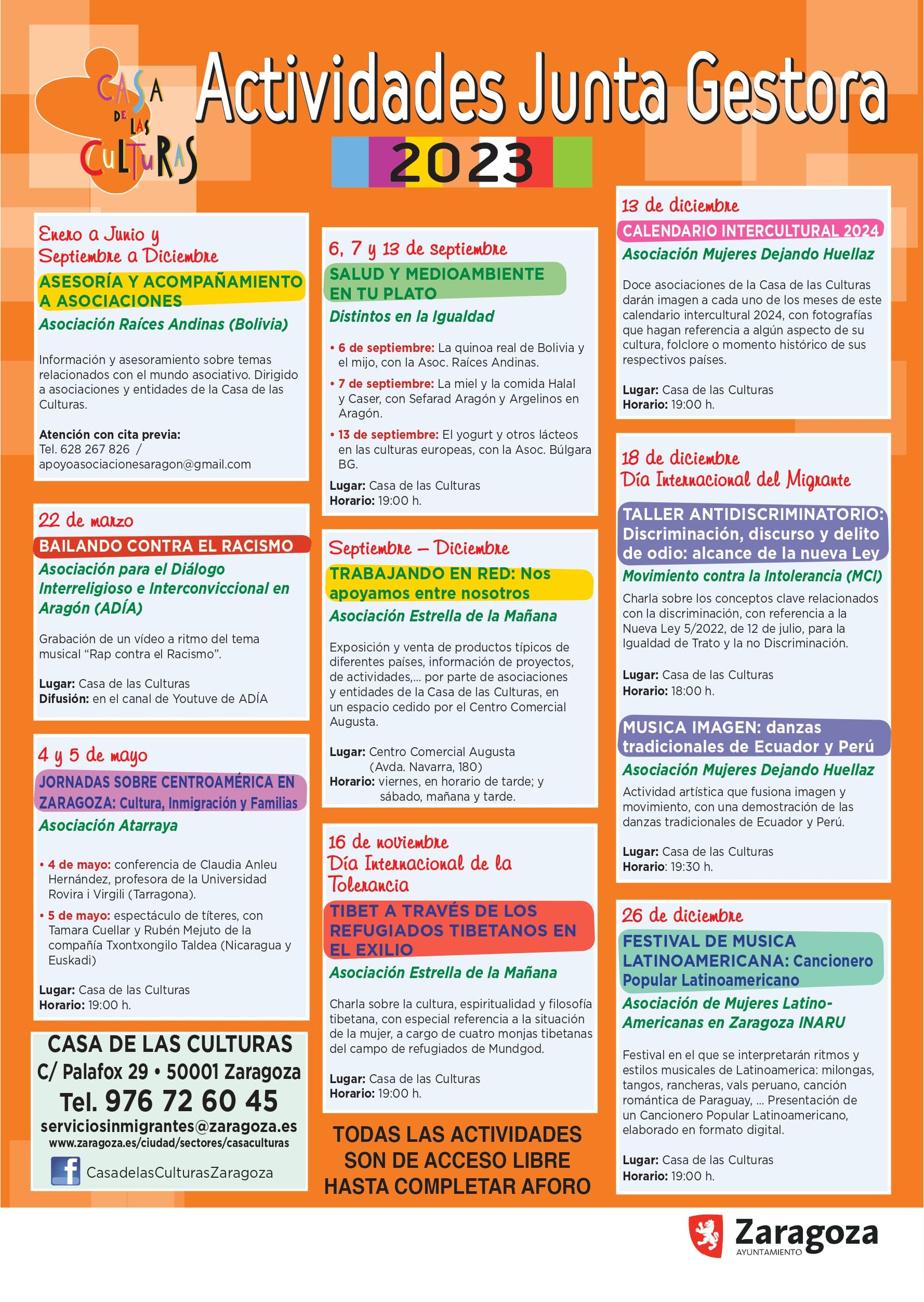 Actividad participativa, de sensibilización y difusión intercultural, en la que participan asociaciones de inmigrantes y entidades ciudadanas de la Junta General de Casa de las Culturas y Casas Regionales con sede en Zaragoza, que trabajan por la integración de las personas inmigrantes en la ciudad.