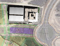 El acceso al aparcamiento de visitantes se realiza por la entrada actualmente existente, y el acceso al complejo se organiza desde la futura calle situada al este de la parcela.
