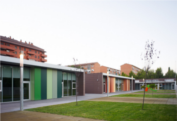 Su disposición en la parcela se realiza de forma que se libere el máximo espacio libre posible destinado a zona de recreo y jardín, ubicándose el mismo junto a la zona verde pública existente "Parque Bruil". Según el programa facilitado se ha desarrollado el edificio, de manera que tanto en su interior como exterior, se dispongan de los espacios necesarios para cubrir las necesidades.