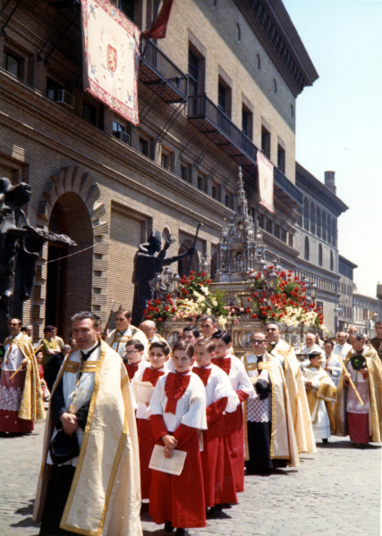 Fue muy importante como forma de reafirmación frente al protestantismo. A la solemne procesión asistían los jurados de la ciudad y les acompañaban los gigantes y cabezudos. Los libros de pregones conservados en el Archivo Municipal documentan su convocatoria y solicitan limpieza y ornato de las calles y casas por dónde discurría…