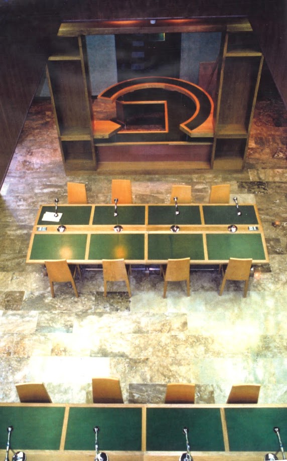 La sala noble del palacio renacentista se rehabilita como un espacio para el público, con dos alturas conectadas por una escalera de caracol. En la parte inferior, las mesas de consulta y la colección de libre acceso de la bibliteca y de la hemeroteca, la parte superior para la consulta de microfilms.
