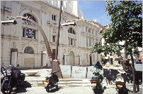Otro elemento formalmente definitorio de la plaza son las farolas, las cuales habrían de iluminar la parte baja de la fachada del Teatro, insertándose en el entorno como un elemento escultórico. Su colocación "en escorzo", pretendía formar una bóveda visual que cerrara la fachada opuesta al Teatro. Los bancos se reducen a la mínima expresión de su forma -un plano y un soporte- y están realizados en madera de teca sobre pies de acero inoxidable. Finalmente, los árboles plantados -Robinea pseudoacacia- no se entienden sino como una continuidad de los existentes en la calle Verónica.
