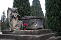 Tomamos el andador de la Fosa Común, principal eje este-oeste del Cementerio y perpendicular al andador Costa, seguiremos en dirección este, hacia la Fosa Común del Cementerio. También aquí se concentran algunos de los más interesantes enterramientos de la necrópolis.