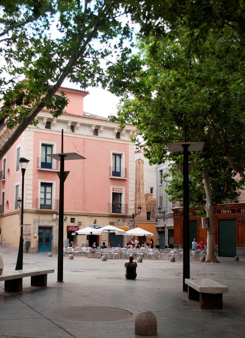 Próxima a la iglesia de Santa María Magdalena, una construcción del siglo XIV de estilo mudéjar, y situada en la plaza que lleva su mismo nombre, se encontraba la Puerta de Valencia. Fabiola Gil Alarés , escultora y grabadora especializada en la xilografía japonesa, y Vicente Gómez Arbiol, restaurador y grabador, pintaron un mural para conmemorarla por encargo del Ayuntamiento de Zaragoza. La obra denominada Arco de Valencia fue ejecutada en el año 2008 a partir de fotografías de finales del siglo XIX, cuyo fin es retenerla en la memoria de todos los ciudadanos. La obra dota de colorido un espacio urbano donde el protagonista es el ladrillo de la Iglesia Santa María Magdalena. Desde esta plaza tenemos acceso a la calle del Sepulcro donde se ubica la siguiente obra de nuestro itinerario, una intervención de Pilona Vicente , pintora y decoradora zaragozana iniciada en el mundo del trampantojo en los años 80, que tuvo su taller en esta misma calle. Su obra, Trampantojo , es una pintura mural, realizada sobre una tapia junto al Convento de San Nicolás entre el año 2008 y 2009, en la que la artista quiso representar un paisaje protagonizado por motivos vegetales y algunos animales, que logran fundirse con la rosaleda del Convento de San Nicolás, dando lugar a un gran jardín. Ya había propuesto en 1984 la decoración de este muro aunque con otro motivo iconográfico en el que representaría figuras de diversos artesanos, siendo estos los gremios predominantes en el barrio, pero nunca se autorizó ese proyecto. De temática similar podemos citar Naturalmente sostenible , una pintura mural de Gemma Chikita Gimenez y Javier Danger Sánchez, aunque situada en Valdespartera: también nos ofrece una visión de la naturaleza, esta vez en un lenguaje neo pop, donde el color cobra un gran protagonismo gracias a su viveza y la energía que logran transmitir, así como las representaciones de flamencos y las representaciones femeninas entendidas como alegorías del sol o del agua. De los mismos artistas es Ciudad Mon'Amour , un mural concebido dentro del Festival Asalto en su cuarta edición (en el año 2009), con el que realizan una crítica hacia la sociedad de consumo del momento.