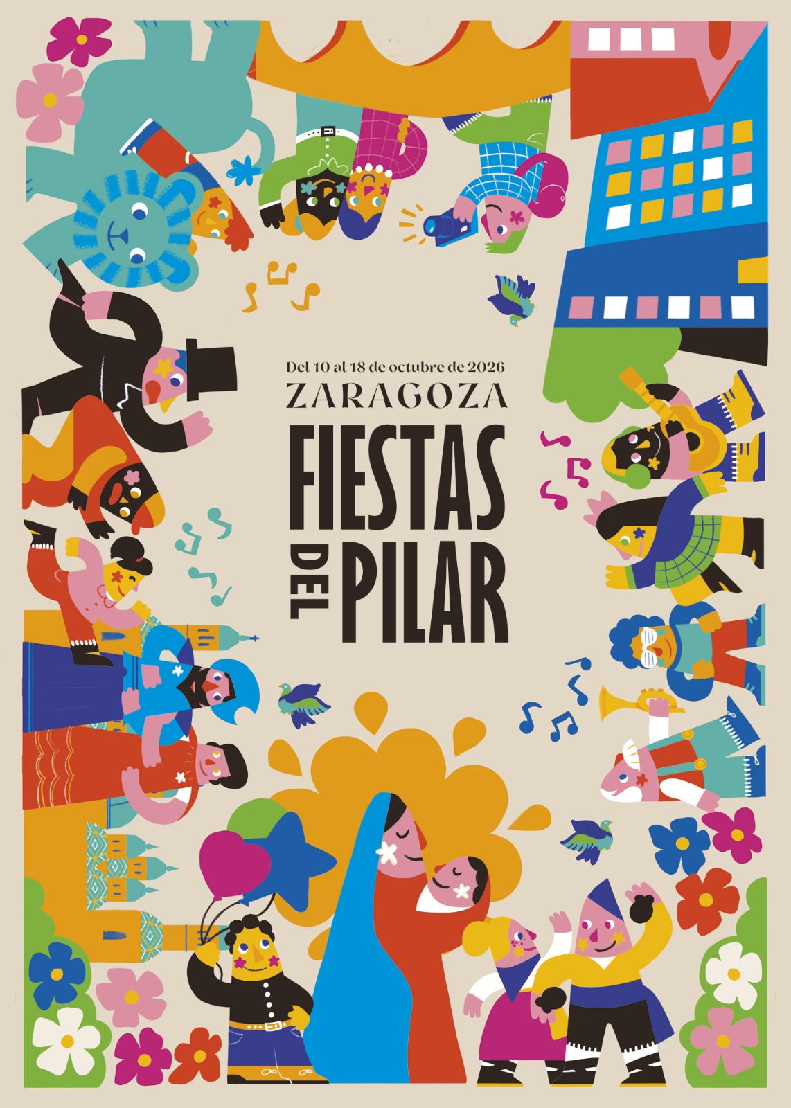 Las Fiestas del Pilar 2026 ya tienen imagen. El cartel titulado "La ciudad en ofrenda", obra de la diseñadora zaragozana Jesana Motilva Santaliestra, ha sido elegido como la propuesta ganadora del concurso convocado para representar gráficamente la cita más emblemática de la ciudad.