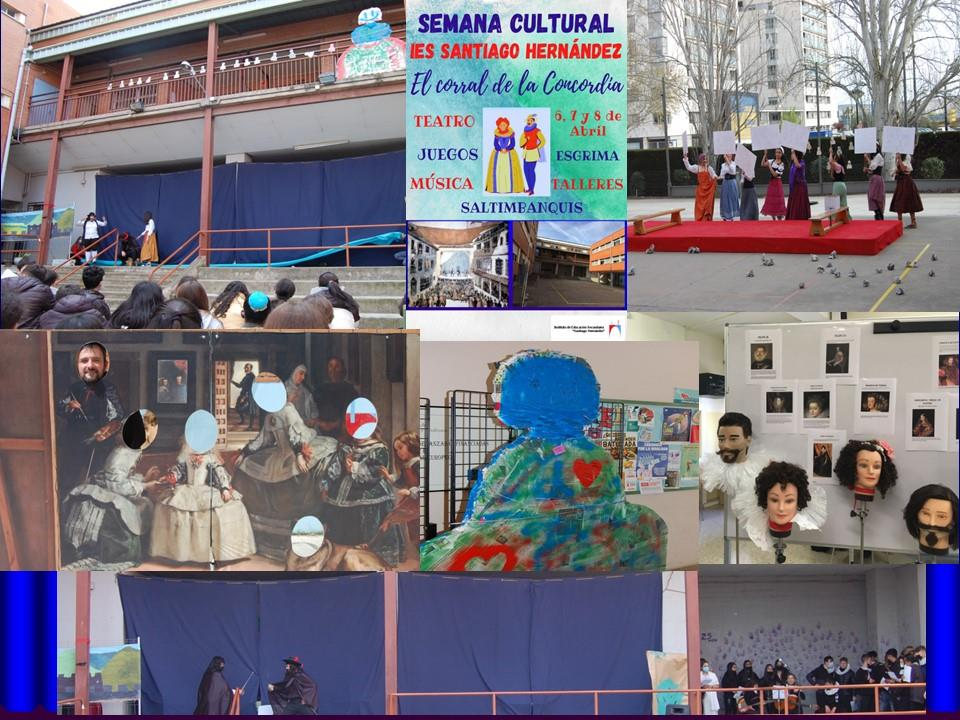 Se trabajó previamente de manera curricular en las diferentes materias y desde el Departamento de Extraescolares a través de las siguientes fases: 1) Difusión del proyecto, aprobación en claustro y consejo escolar y puesta en marcha con aportación de las primeras ideas sobre el planteamiento base. 2) Actividades previas promocionales del proyecto: actividades en el Corral de la Concordia durante los recreos (los "Santi-recreos"), ciclo de cortometrajes "En invierno ponte de corto: el Corral de la Concordia" y carnaval literario. 3) Preparación y desarrollo de las jornadas de la Semana Cultural. 4) Día central de la recreación histórica y representación. 5) Evaluación del proyecto y establecimiento de objetivos de mejora de cara una continuidad del proyecto. El trabajo del alumnado desembocó en las jornadas culturales del centro (6-7 de abril 2022) a través de la realización de una serie de talleres hasta la culminación el día 8 de abril en el que tuvo lugar la recreación histórica en torno a la representación dramática.