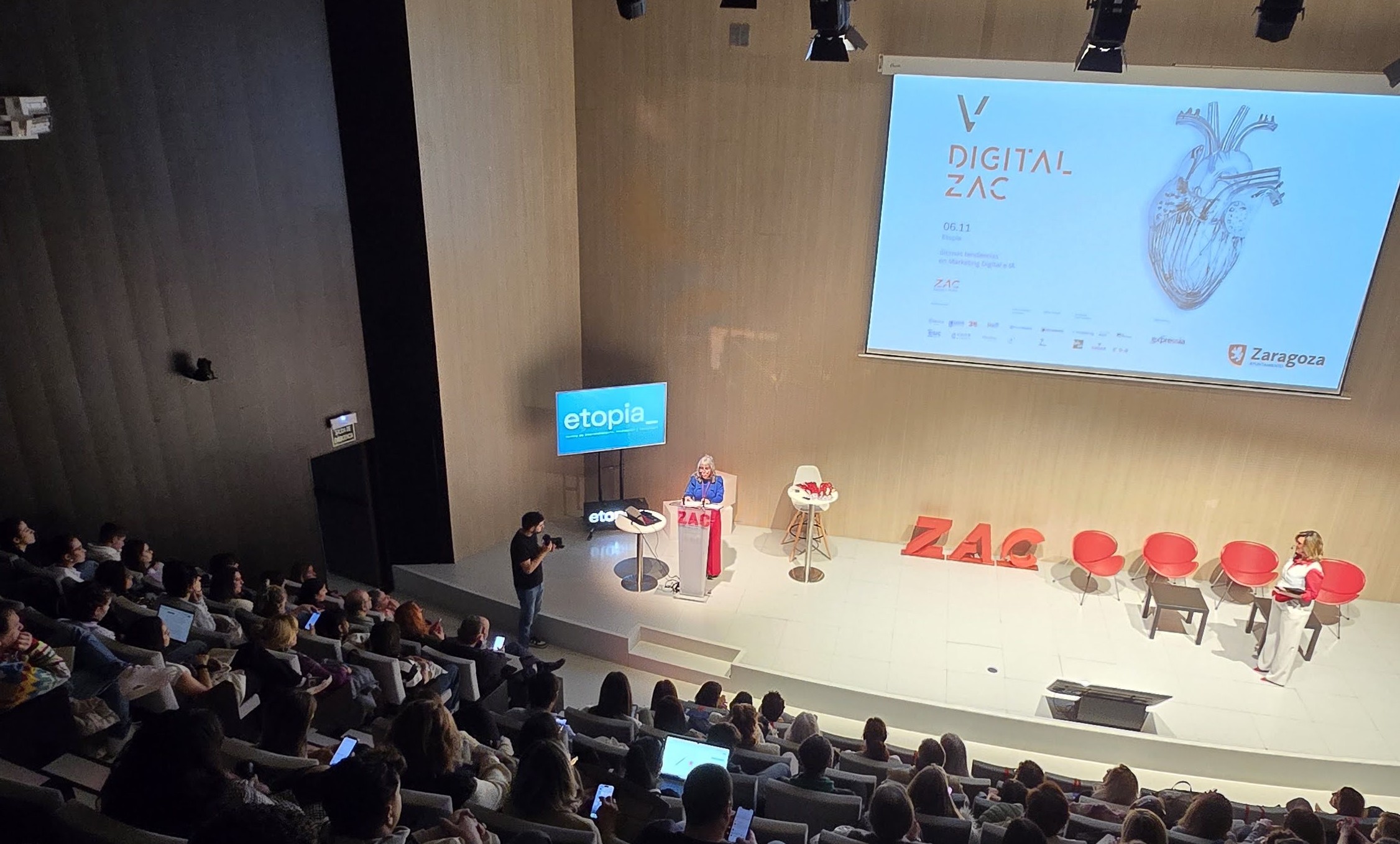 El Congreso Digital ZAC cumplió 5 años. Etopia fue el epicentro de la inteligencia artificial, marketing digital y emprendiemiento en Aragón. Estuvo dirigido a emprendedores, profesionales, pymes y starups que quieran descubrir cómo la innovación y la IA están transformando la forma de hacer negocios, una oportunidad para que empresas y profesionales de marketing y tecnología intercambien conocimientos, fortalezcan sus redes de contacto y se mantengan al día con las últimas tendencias.