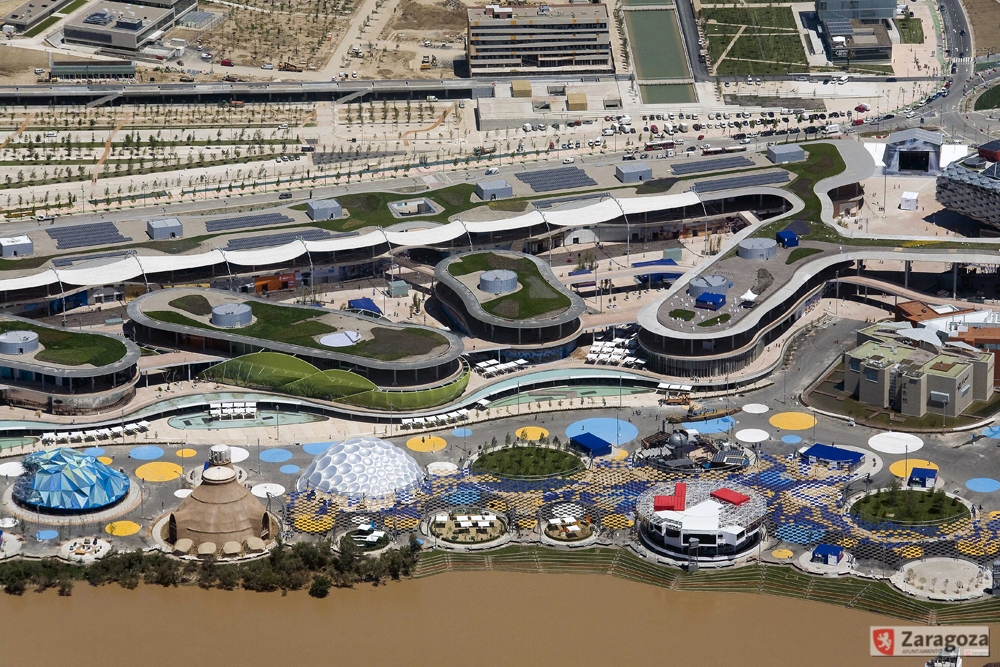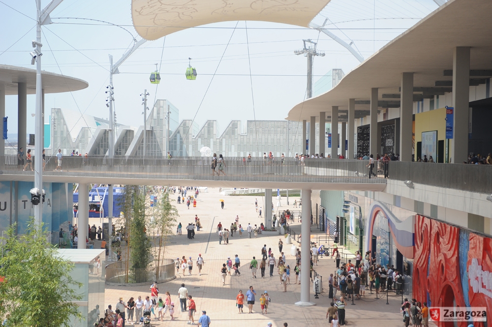 De los elementos que ya no podemos encontrar en el recinto Expo, destacaremos dos: la cubierta textil y las pérgolas, con ellos se intentó rebajar entre 3 y 4 grados las elevadas temperaturas del estío urbano.