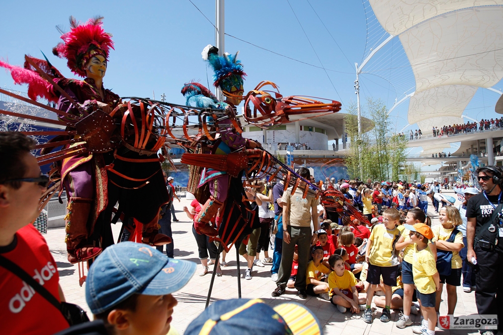 El agua como protagonista de la muestra aparecía y amenizaba la visita: el Ebro y su eterno fluir, las cascadas de la zona de los restaurantes o del entorno del Acuario, el Splash de la Torre del Agua... Muy exitosa fue la intervención artística del danés Jeppe Hein, titulada 'Appearing rooms', laberinto acuático con distintas secuencias de chorros de hasta 2 metros de altura para que el visitante pudiera interactuar ¡y refrescarse!