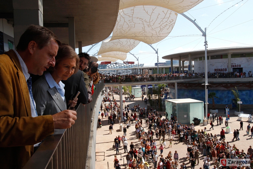 La climatología estival zaragozana puede ser muy dura, para facilitar la visita se tuvieron en cuenta la instalación de distintos elementos como nebulizadores, fuentes y láminas de agua que ayudaron a la gente a soportar las colas de acceso a los pabellones o el calor.