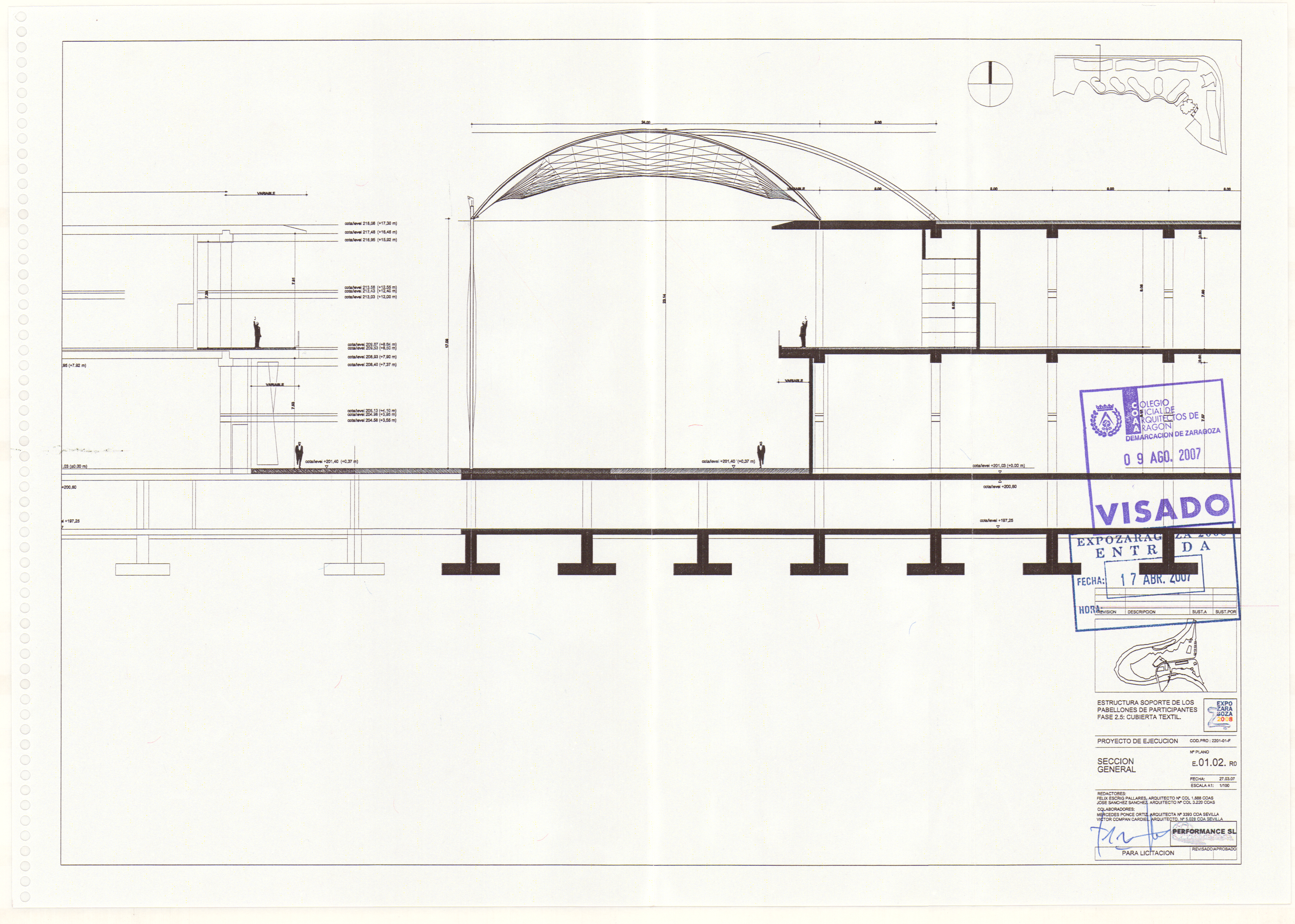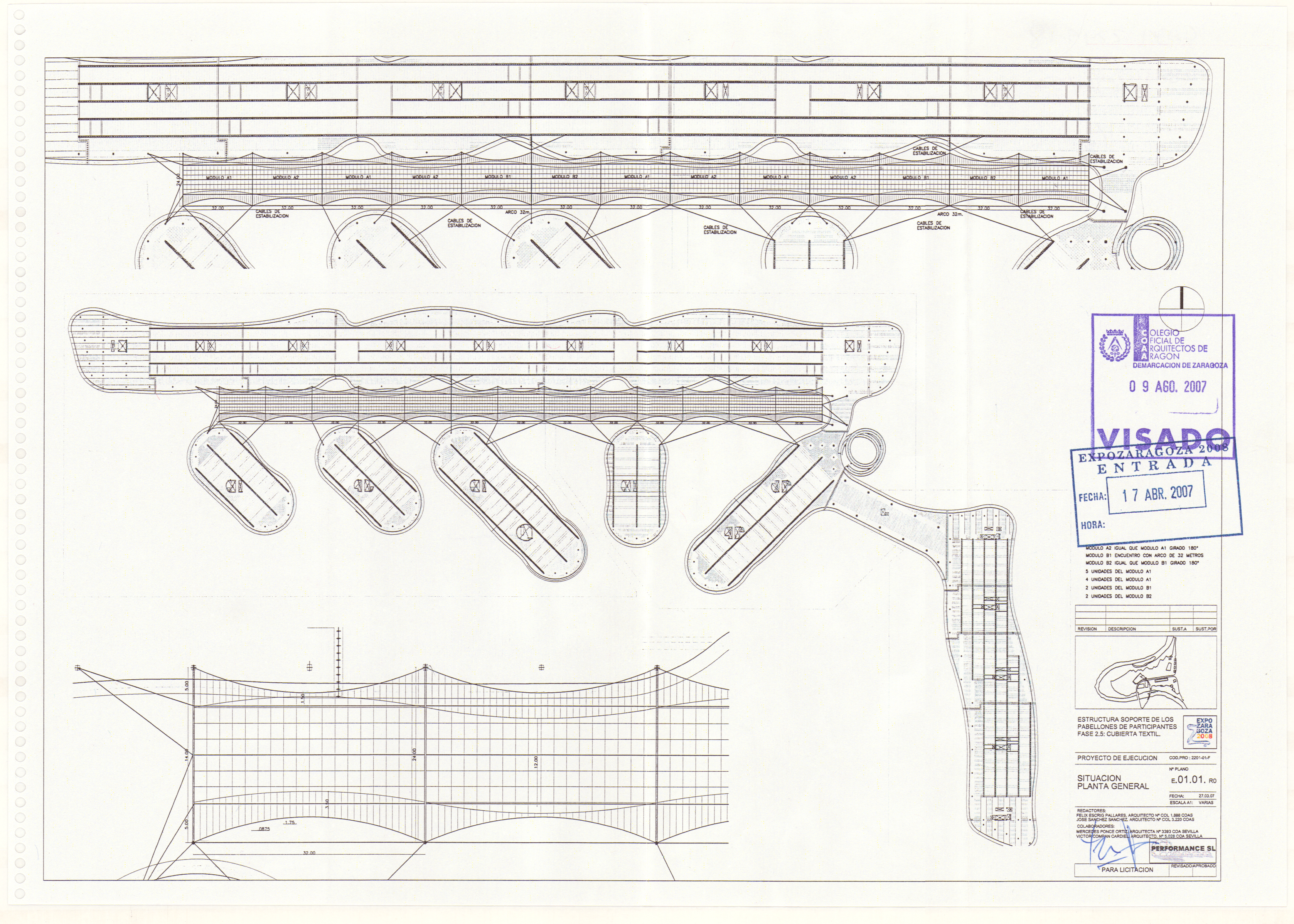 La cubierta textil resguardaba al visitante mientras paseaba entre los edificios Ronda y Ebro, los que albergaban los pabellones de los países participantes. A 17 metros de altura, ocupaba una superficie de 400 x 24 metros distribuidos en 13 módulos, el aspecto final semejaba un río fluyendo y proyectando una sombra de 5200 m2 sobre la avenida principal de la Expo. El diseño de la tensoestructura fue realizado por Félix Escrig y José Sánchez y ejecutado por IASO,SA. Para el diseño artístico se contó con Isidro Ferrer que conjugó un poema del escritor zaragozano Grassa Toro con una decoración abstracta de enredaderas.