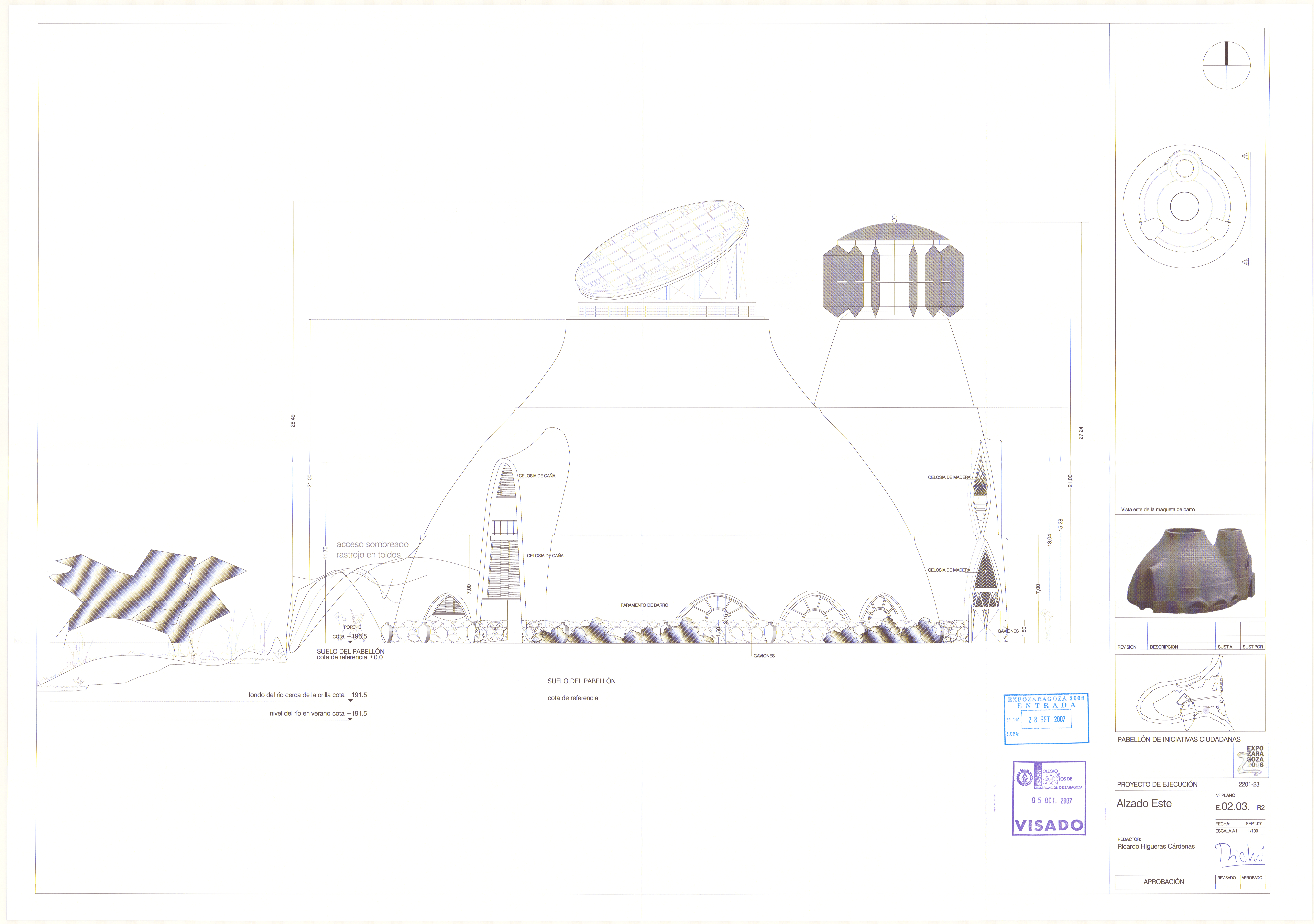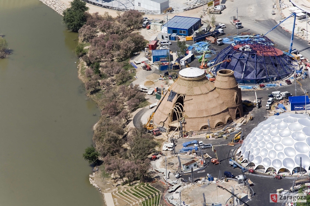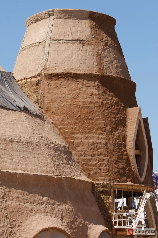 Este pabellón fue diseñado por el arquitecto Ricardo Higueras bajo la premisa de que una arquitectura sostenible es posible. Conocido popularmente como el 'botijo', se construye íntegramente con materiales naturales: barro, pajo y madera y, además, garantiza su funcionamiento con fuentes de energía renovables: luz solar, agua, aire...