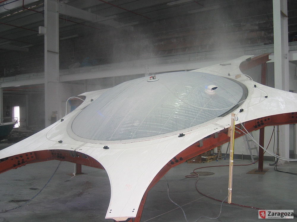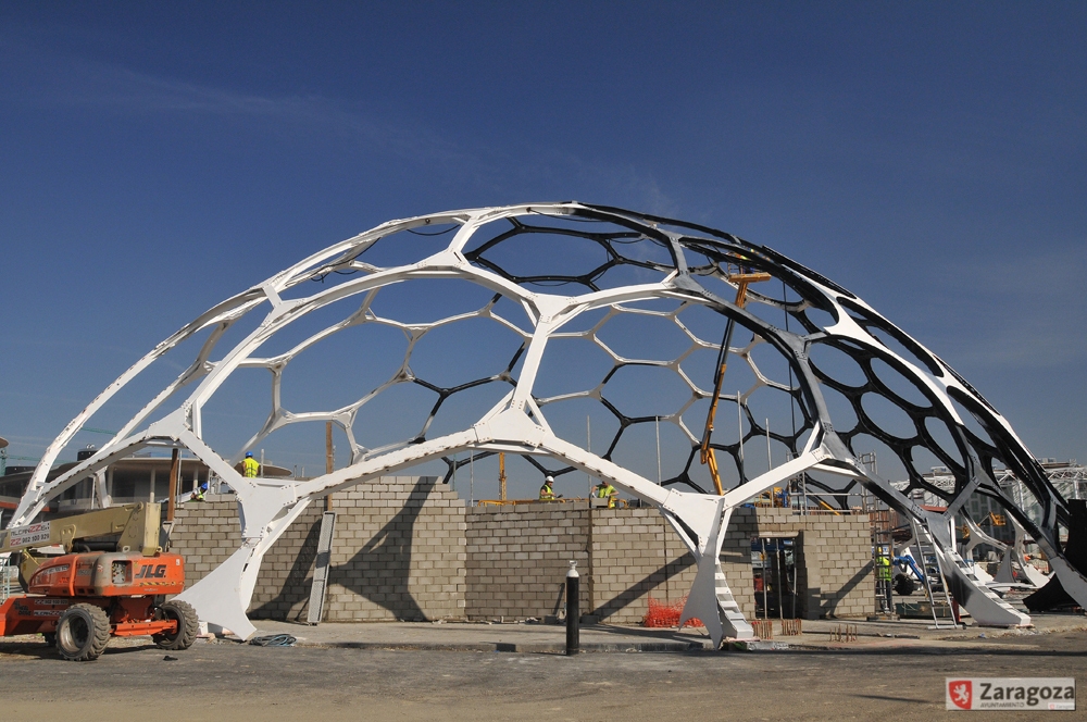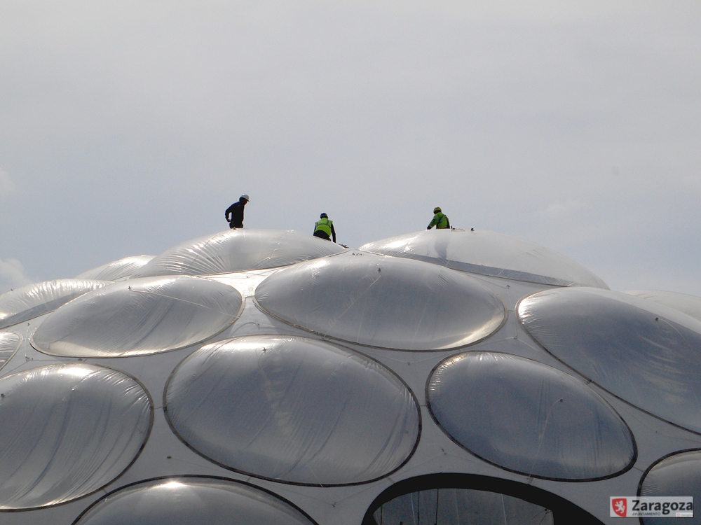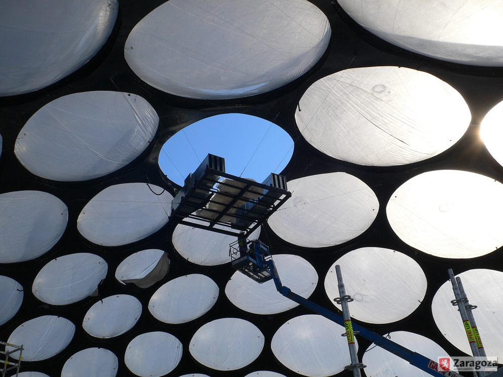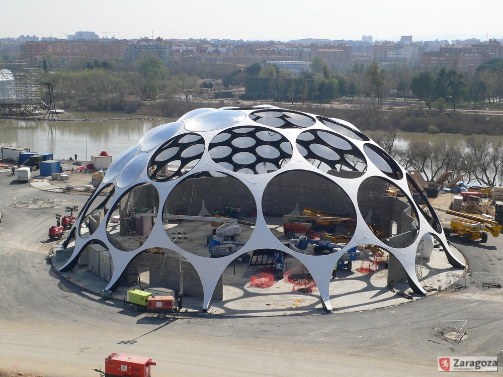 Este pabellón fue diseñado por el arquitecto Enric Ruiz-Geli en forma de cúpula con 1000 m2 de superficie que reproduce el tejido microscópico de la sal. Para su construcción se utilizaron materiales reutilizables y reciclables, un esqueleto metálico que soportaba un recubrimiento de 82 'cojines' con tres capas de ETFE, a modo de bóveda hinchable. Además contaba con un sistema de riego de agua con sal que, en principio, aportaba un plus bioclimático ya que conseguía mantener el ambiente del edificio sin necesidad de uso del aire acondicionado.