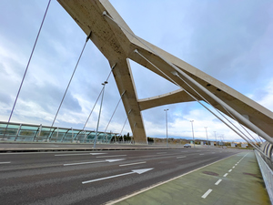 El Puente del Tercer Milenio, ganador del primer Premio de Ingeniería de ACHE, es el mayor puente de arco en hormigón suspendido del mundo. Es un puente espectacular, moderno lo que le hace muy atractivo para todo tipo de actividad audiovisual. Sus formas poseen una enorme fuerza visual y una riqueza arquitectónica poco usual. Arco atirantado por el tablero, con una estructura de arco de 216 metros de luz, un tablero de 270 metros de longitud y 43 de ancho. El arco de hormigón blanco tiene 216 metros de luz, con 35 metros de altura sobre el tablero, 5,5 m de ancho y 2 m de profundidad. 3 carriles vehículos 1 bicicletas y 1 peatones por sentido. Utilizado en innumerables actividades audiovisuales.