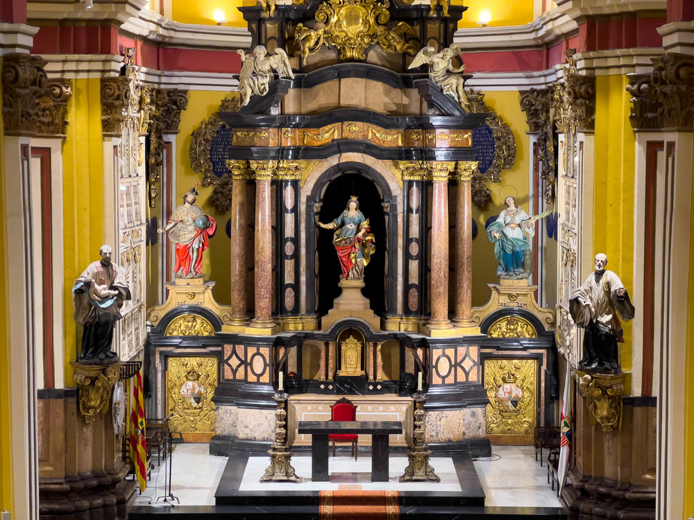 La iglesia tiene dos accesos: el primero y principal por la parte delantera de la Plaza del Justicia, donde hay espacio de parking para camiones. Por la parte trasera hay una pequeña entrada de peatones.
