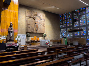 La Iglesia de Nª Sª del Carmen es un templo católico que forma parte de la Parrroquia homónima, compuesta por la iglesia junto con el Colegio Mayor Virgen del Carmen. Levantada en la década de 1960, se sitúa en una manzana rectangular con fachada principal a Pº María Agustín, que destaca por su gran cruz en hormigón. Construida con un estilo y concepción modernos, el interior se configura como un lugar en penumbra sutilmente iluminado por una serie de pequeños vanos de colores, rememorando a las grandes vidrieras góticas.