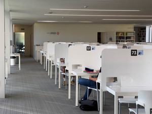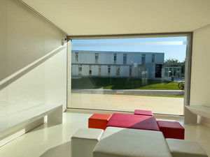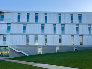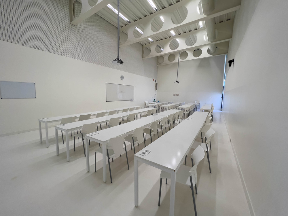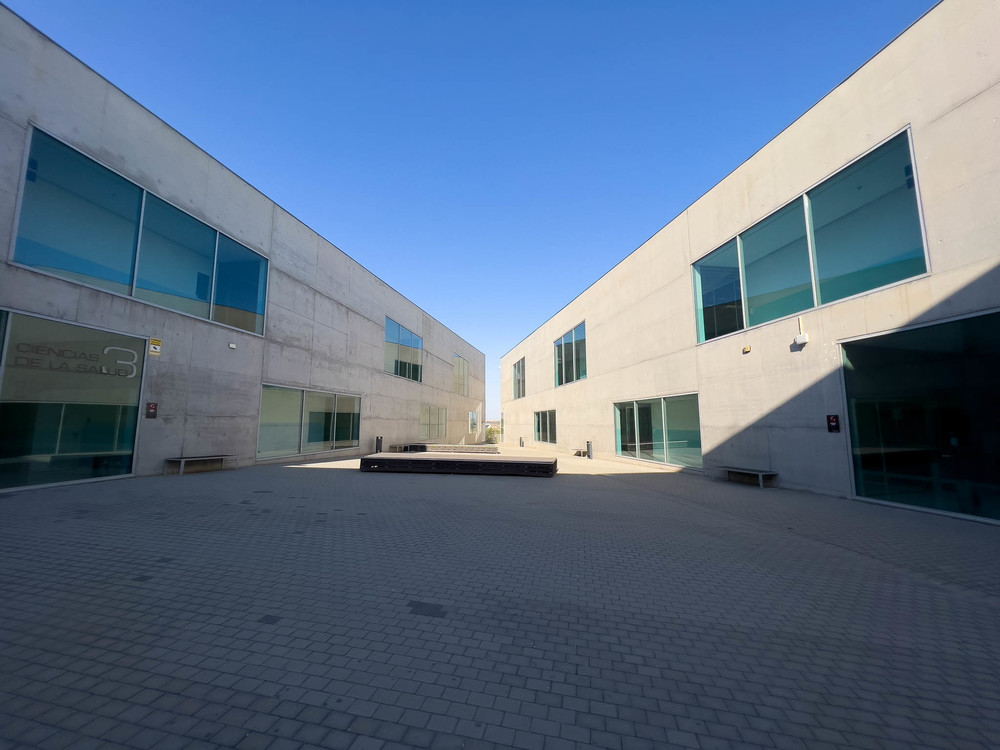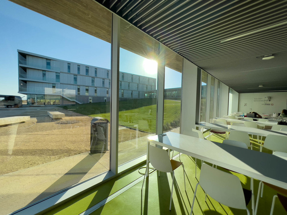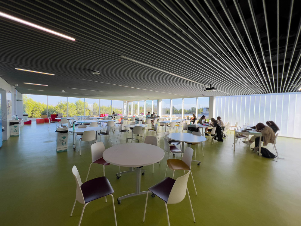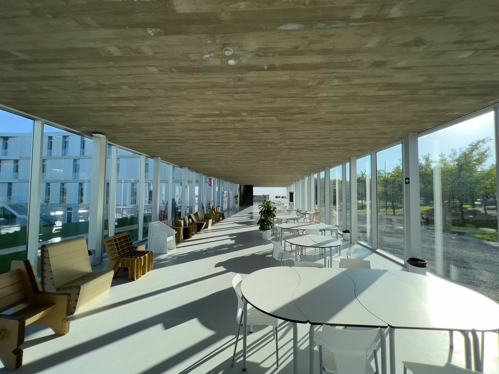campus, moderno, diafano, estudios, estudiantes, hormigon, ventanales, arquitectura
