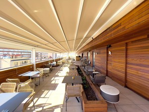 hotel vistas, terraza, vistas, hostelería, hotel moderno, diáfano, hotel diáfano, madera