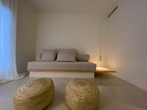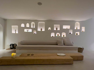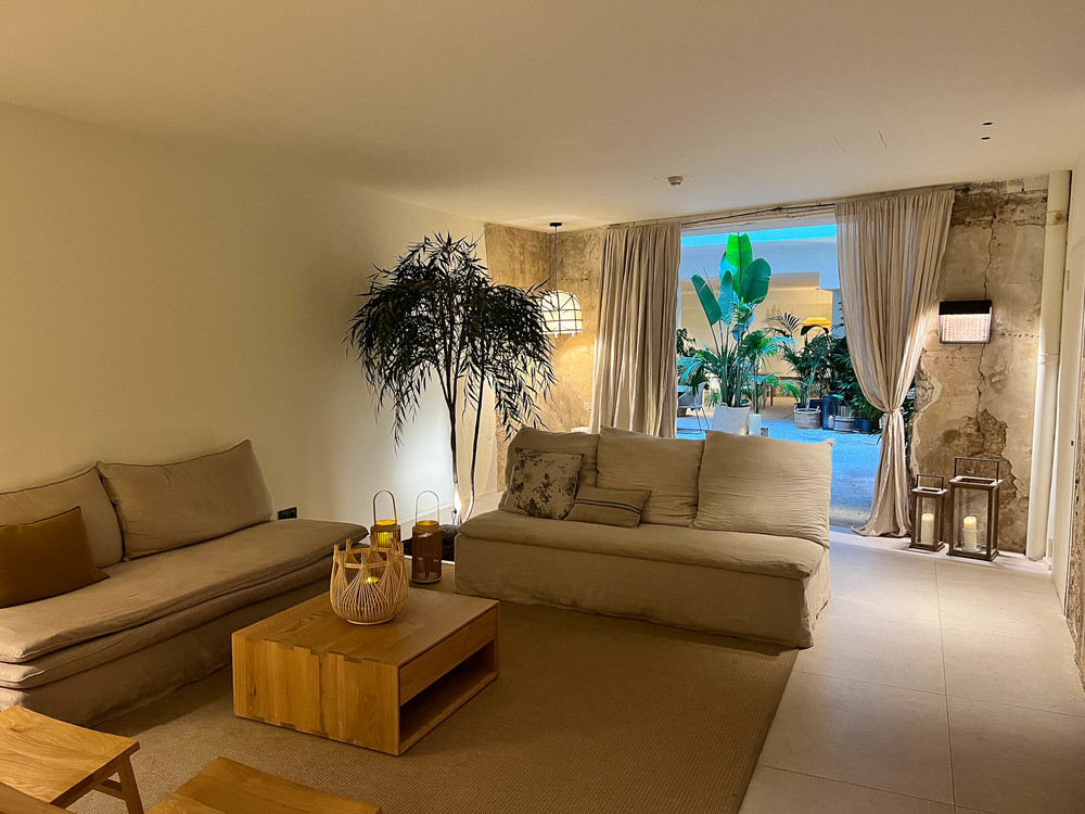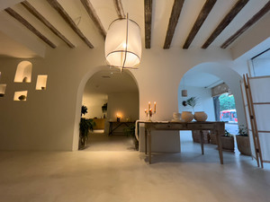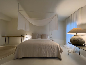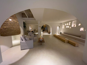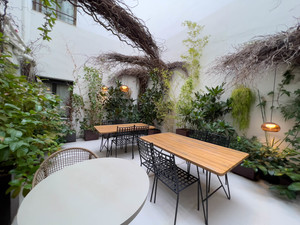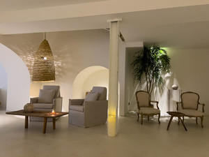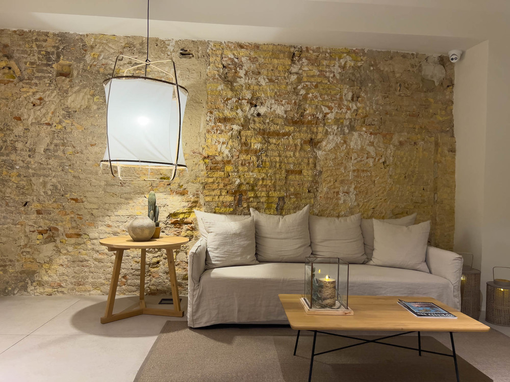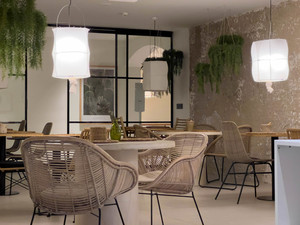 hotel moderno, ladrillo visto, moderno, diáfano, hostelería, tonos pastel