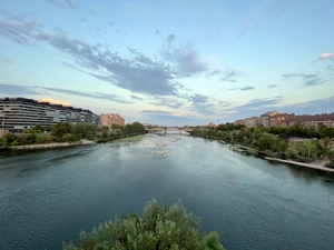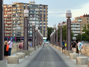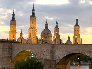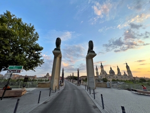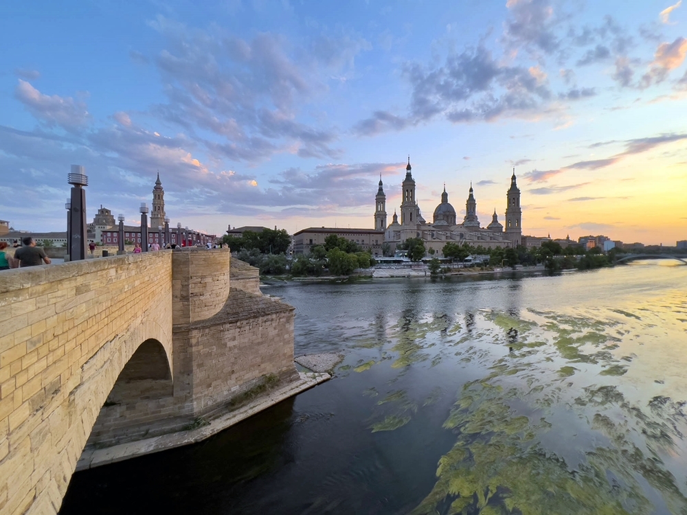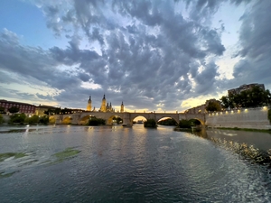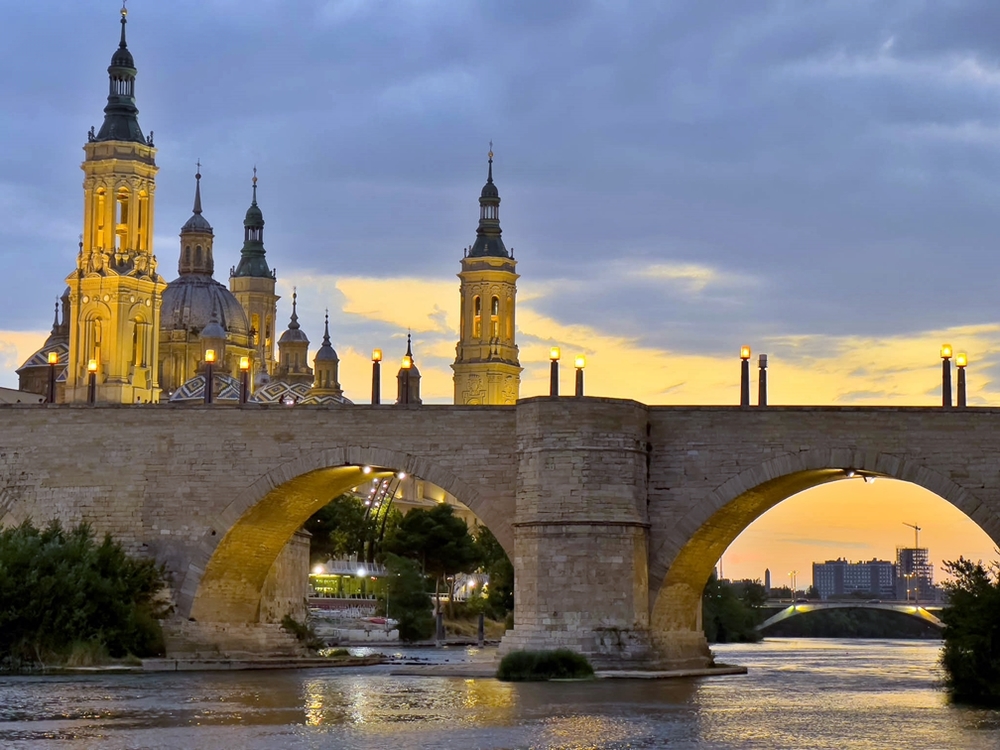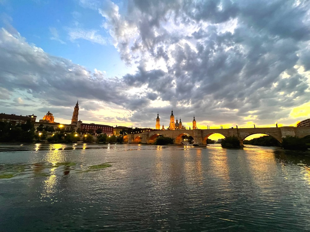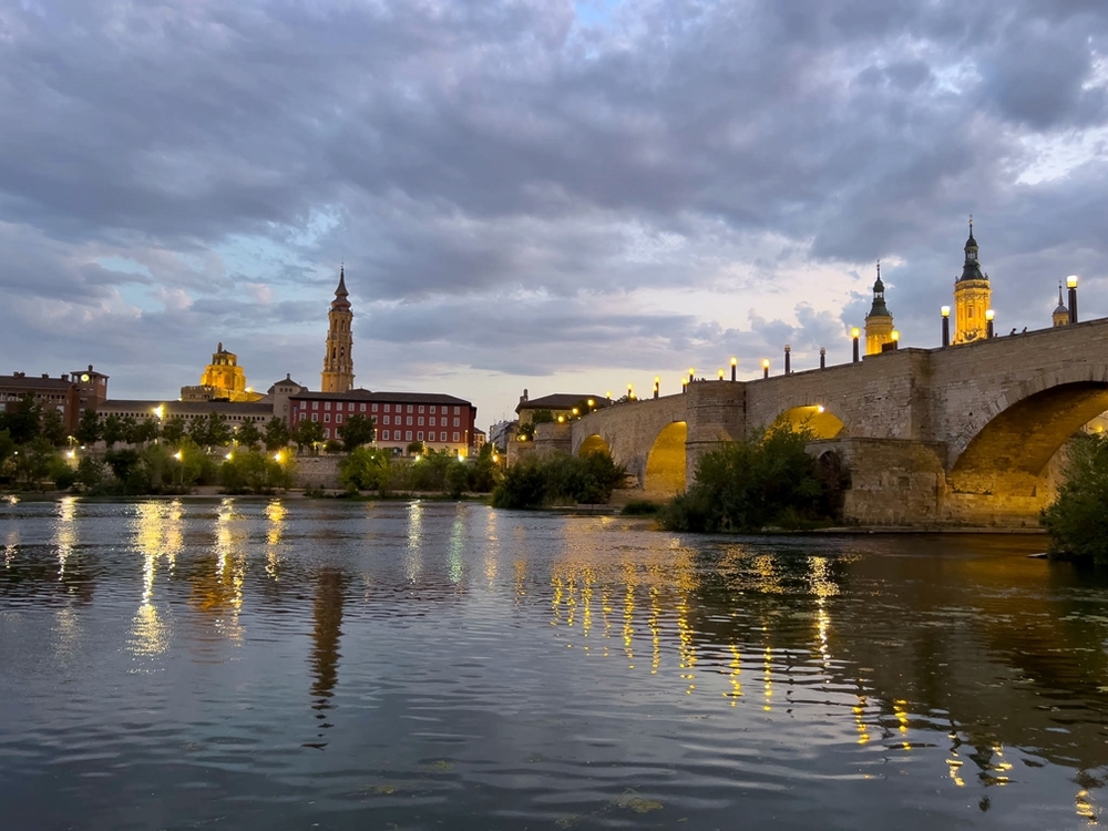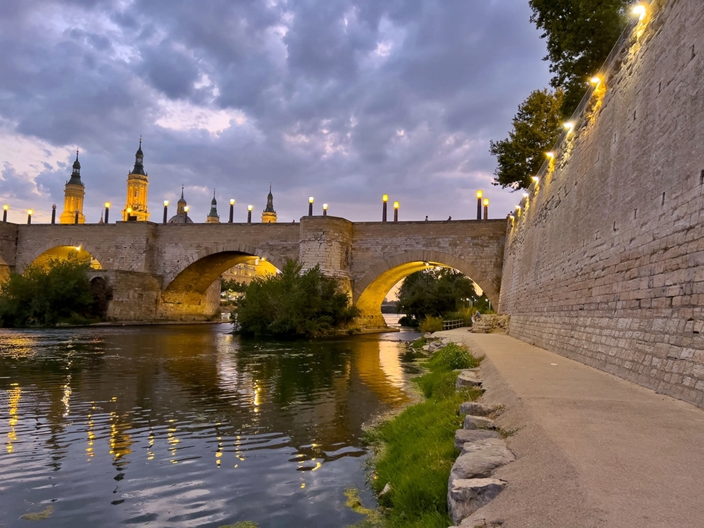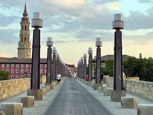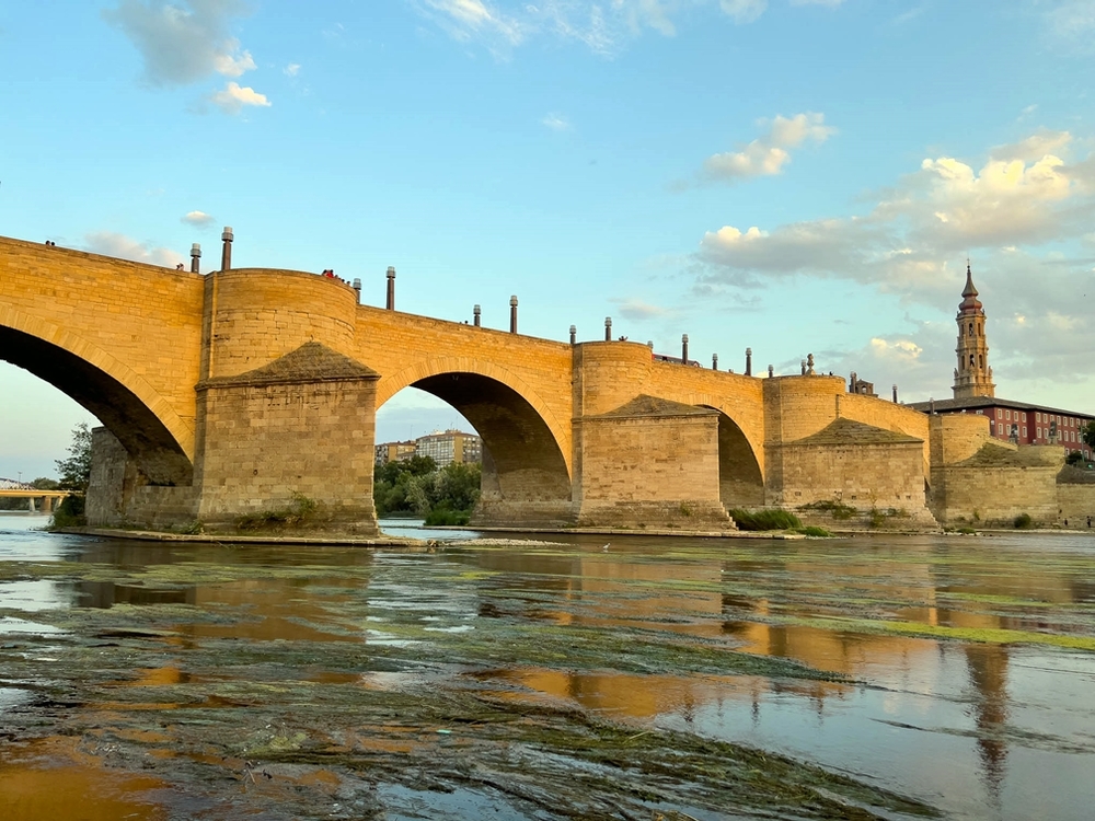 El Puente de Piedra de Zaragoza es el más antiguo de los puentes zaragozanos, que une el Casco Histórico con el Arrabal. Se tiene constancia de que en el S.I d.C. los romanos consruyeron un puente que, con el paso de los siglos, ha sufrido numerosas reparaciones desde la Edad Media hasta la actualidad. Erigido en piedra sillar, tiene 225 metros de longitud y está compuesta por 7 pilares y arcadas, una de las cuales permanece oculta, tras la última reforma de Pº Echegaray y Caballero. Este emblemático puente se encuentra situado entre los puentes de Nª Sª del Pilar (o de Hierro) y de Santiago, constituyendo uno de los mejores miradores de la basílica del Pilar.