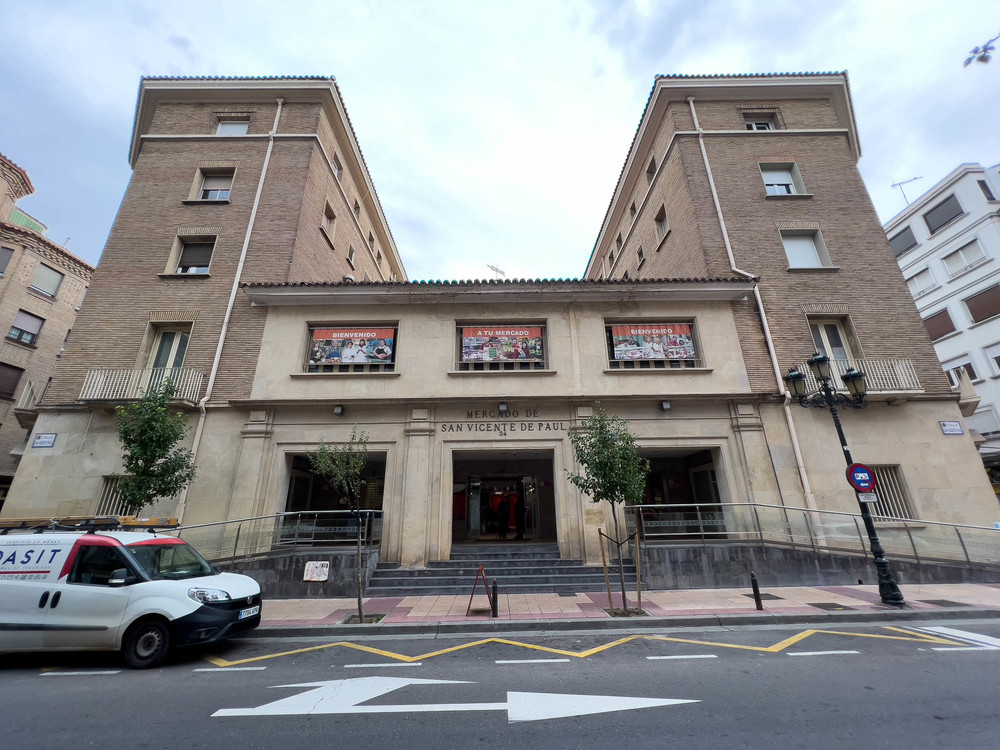 El Mercado de San Vicente de Paúl fue diseñado en 1945 por los arquitectos José Beltrán y José de Yarza, siguiendo un estilo regionalista y en parte ecléctico. El edificio fue una iniciativa del Ayuntamiento de Zaragoza para construir un inmueble que acogiera un programa doble de viviendas y mercado. Este último tiene planta octogonal y se remata en una generosa linterna acristalada. Presenta tres plantas: la planta baja, con las cámaras y puestos de venta; la planta primera, que es en donde se abren los distintos locales de venta y oficinas; y la planta semi-sótano, espacio diáfano para usos diversos, como exposiciones.