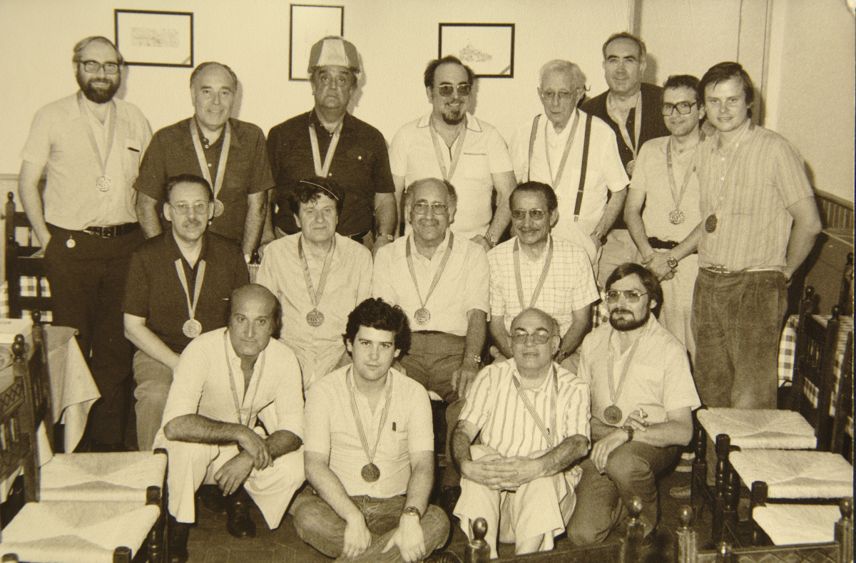 Una foto con mucha historia: Homenaje a Emilio Alfaro y Manuel Rotellar, 1980. Figuran José Luis Pomarón, Emilio Alfaro, Manuel Labordeta, José Luis Pellejero, Alberto Sánchez, Carlos Pomarón, Ignacio Sariñena, Julio Sánchez, José Luis Gota, Miguel Vidal, José María Sesé, Joaquín Gil Marraco, Manuel Rotellar.