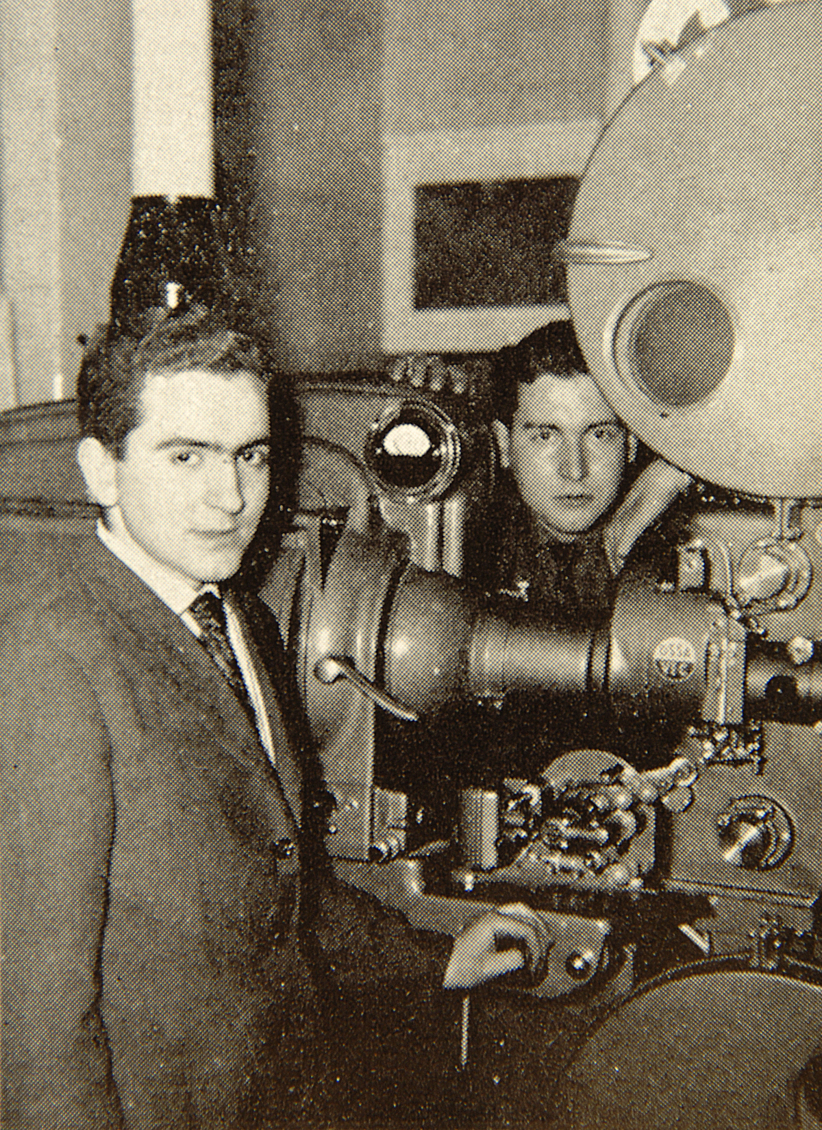 Alberto y Julio Sánchez Millán en la cabina del Cineclub La Salle