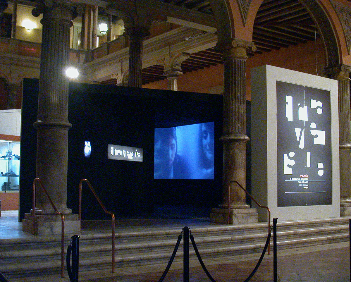 Proyección de fotogramas en el túnel de acceso a la exposición Travesía, 2003