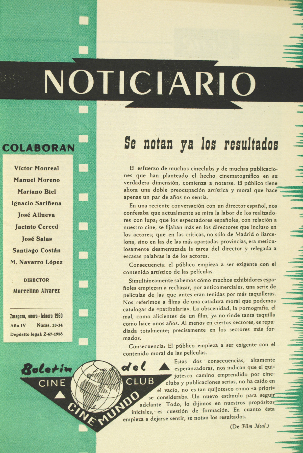 Noticiario. Boletín del Club Cine-Mundo. Enero-Febrero 1960