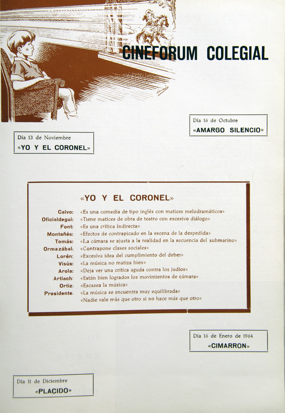 Hoja de Programa del cine fórum colegial, Cineclub La Salle