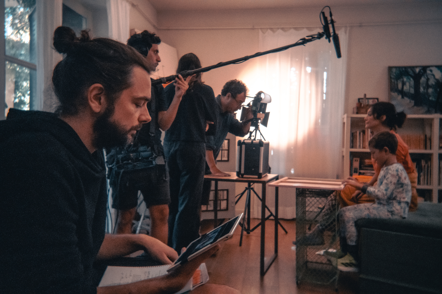 'Como el prota de nuestra peli, a principios de marzo de 2020 viajé con mi familia de Los Ángeles a Madrid por trabajo cuando comenzó la pandemia y quedamos atrapados aquí. Durante el confinamiento, Vanessa (nuestra prota) me pidió que le escribiera una escena para un casting que se convirtió en un cortometraje (Hold For Applause), y cuatro años después en esta peli. Nuestro reto, hacer una comedia romántica en tiempos de pandemia, donde usamos la videollamada, como si de una peli de found footage se tratara, para hablar y reírnos de lo que nos hace más seres humanos que seres sociales, de la diversidad de nuestro idioma, de la tecnología que nos acerca y aleja a la vez, del perdón, la redención, la maternidad, la paternidad y del amor en general, y todo con un móvil' (Gerald B. Fillmore)