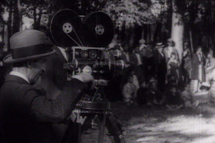 Los operadores americanos son filmados mientras filman a su vez a un grupo de joteros, aproximadamente en lo que es hoy día el barrio del Arrabal. -