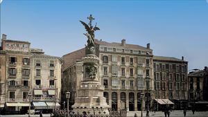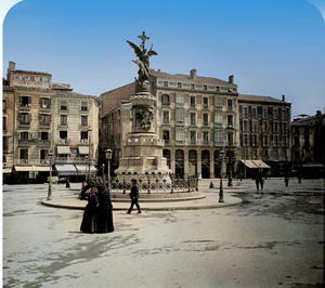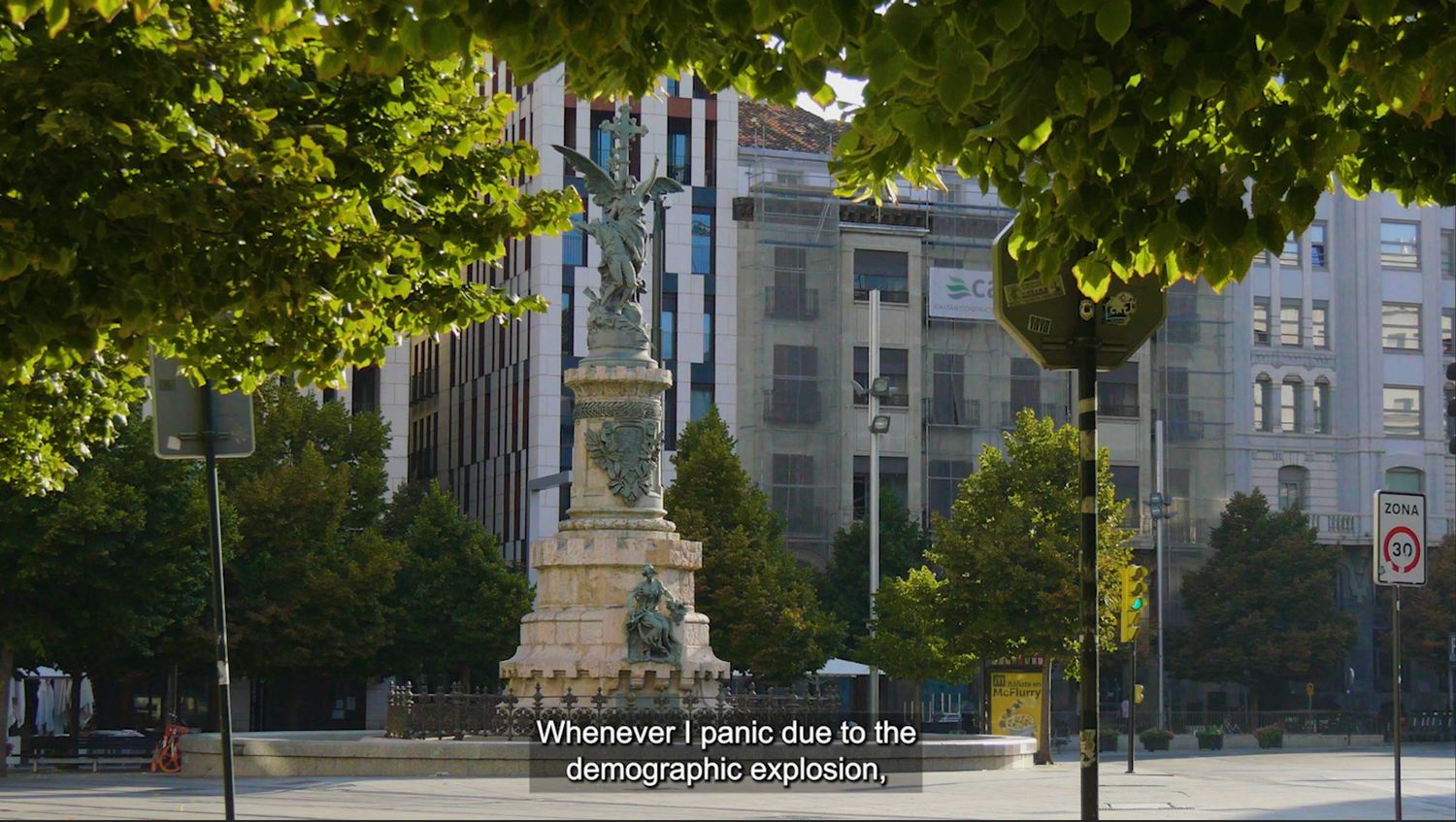 Zaragoza: Plaza de España y Plaza de Aragón, en ambos casos una antigua foto del padre de Buñuel funde con el mismo encuadre en la actualidad.