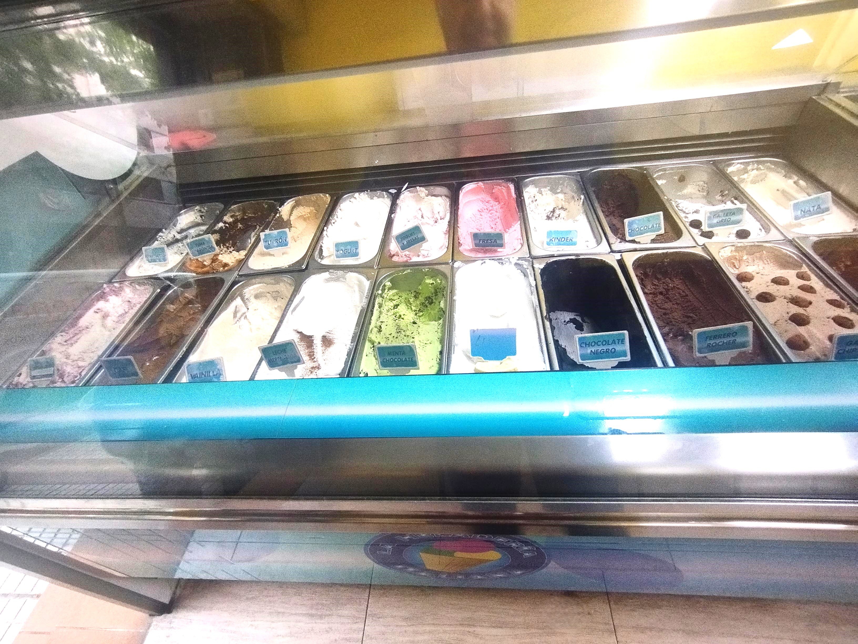 - Dos expositores principales con capacidad para 40 variedades de helado, mesas y sillas. Terraza de hasta seis mesas en la calle. Dos aseos compartimentados.