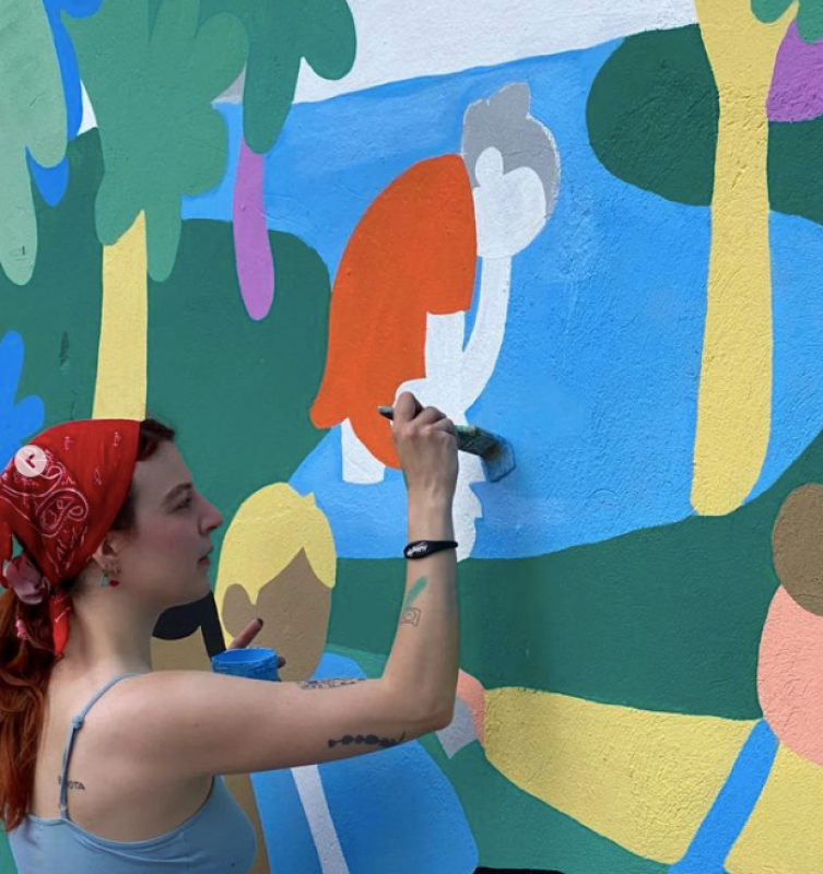 Una de las artistas seleccionadas para este proyecto fue Patricia Torres. Esta zaragozana es diseñadora gráfica, ilustradora y muralista y está detrás de la fresquita identidad de One Piece of a Watermelon. Ella misma se define como una entusiasta del color, la ilustración, la publicidad, la animación, el humor, el diseño y los animales. Estudió en la Escuela de Artes de Zaragoza y siguió su formación con un grado en Diseño Gráfico.