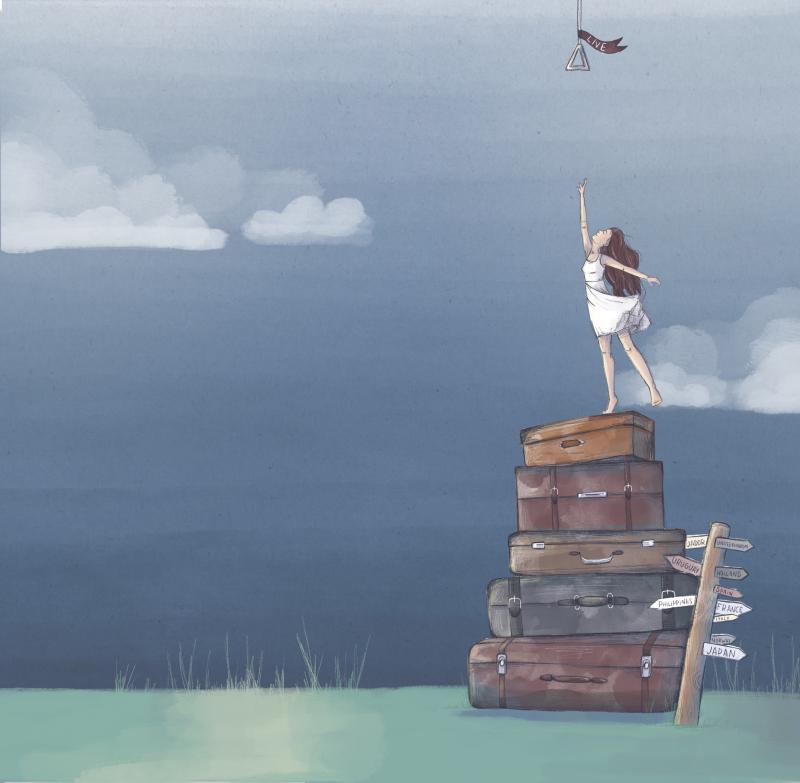 En este proyecto me sumerjo en el mundo de las palabras, en una búsqueda por representar palabras intraducibles de distintos idiomas del mundo. En concreto, esta obra describe la palabra Wanderlust, el fuerte impulso o deseo de viajar por todo el mundo.