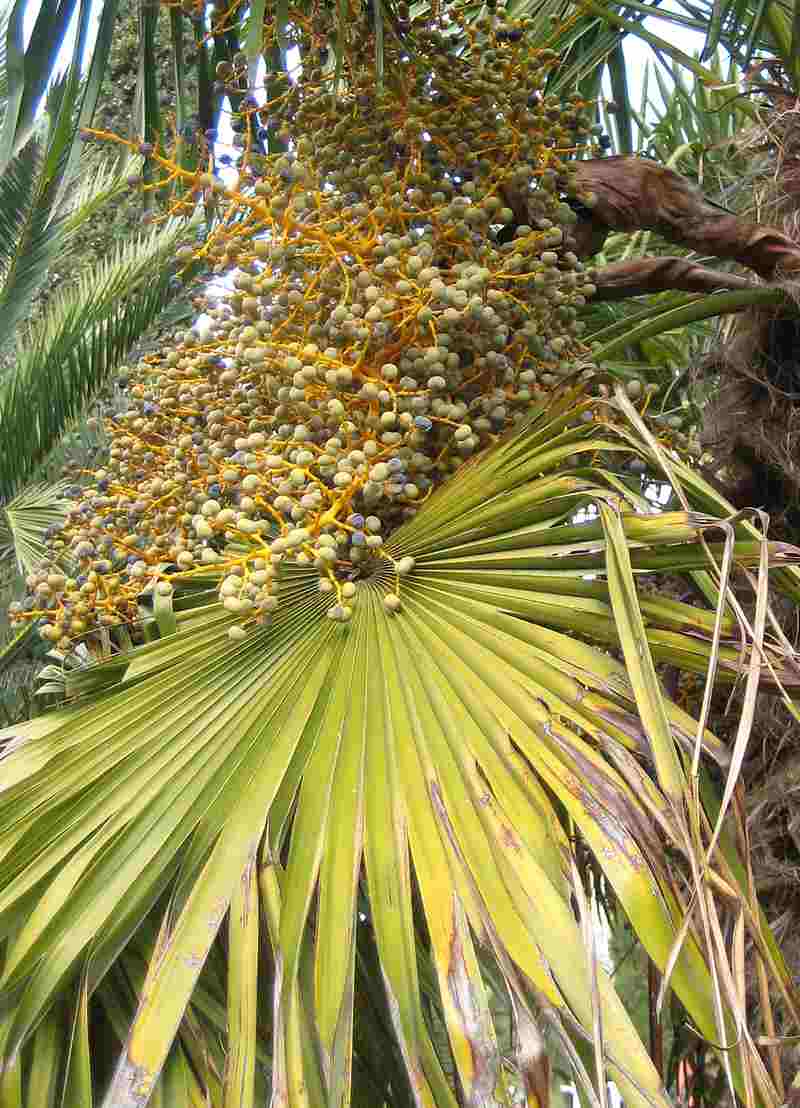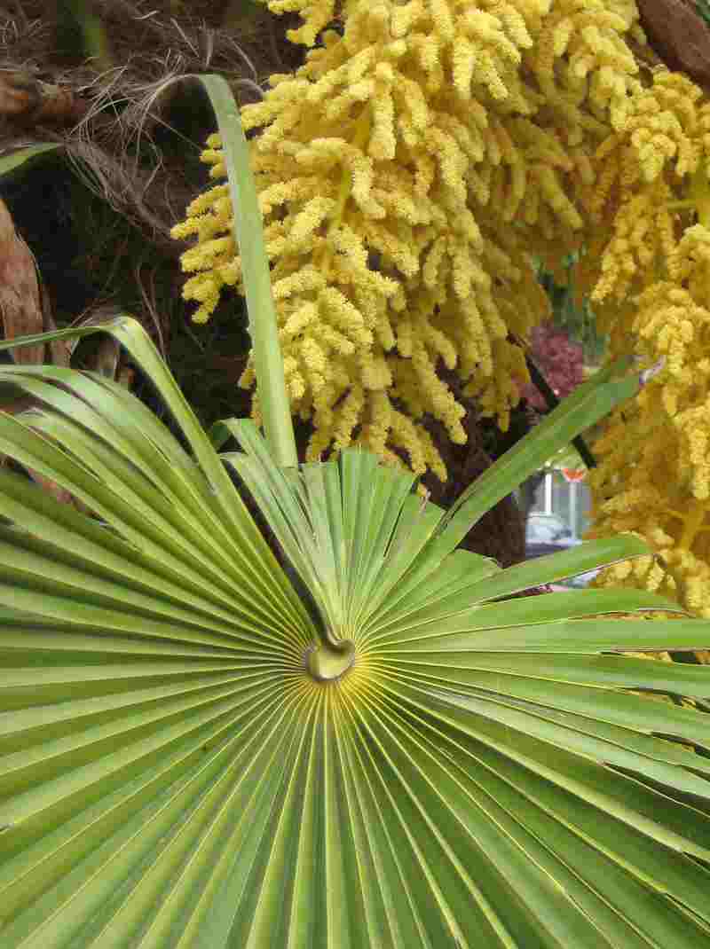 Las hojas, que son de forma palmeada (semejante a una mano abierta) se utilizan para fabricar cestos, sombreros y escobas. Con las fibras del tronco (llamado en las palmeras estípete o estipe) se hacen capas impermeables, felpudos, cuerdas, escobas y cepillos. - Tipo