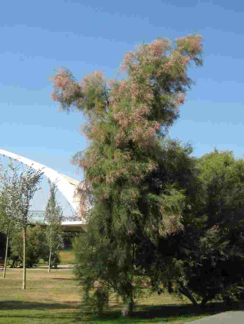 Se caracteriza por su aspecto ligero y plumoso. Flores blancas o rosadas. El fruto es una cápsula más o menos cónica que libera al abrirse unas diminutas semillas con unos pelos sedosos que ayuda a su dispersión. Su origen es el oeste de la zona mediterránea.