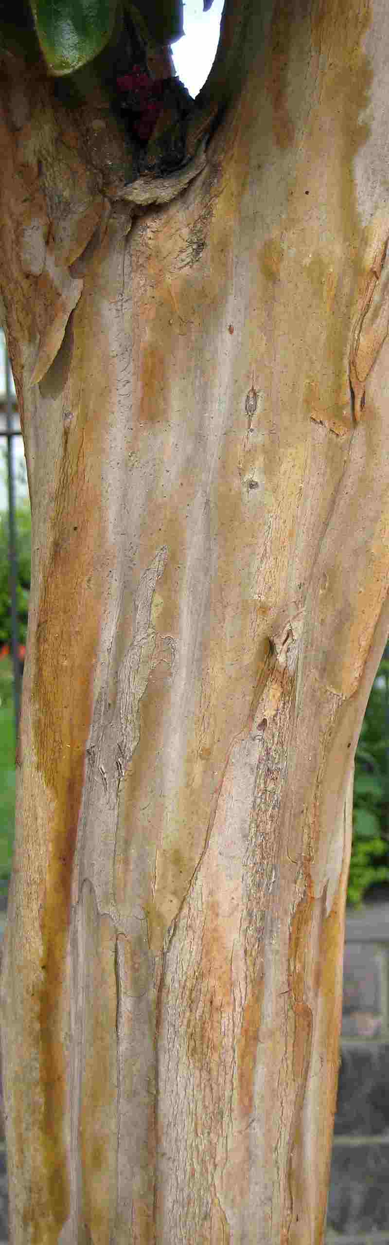 Una característica del tronco de este árbol es que cuando se desprende la corteza, (ritidoma), aparece una madera muy fina como si hubiese sido lijada y lacada en mate.