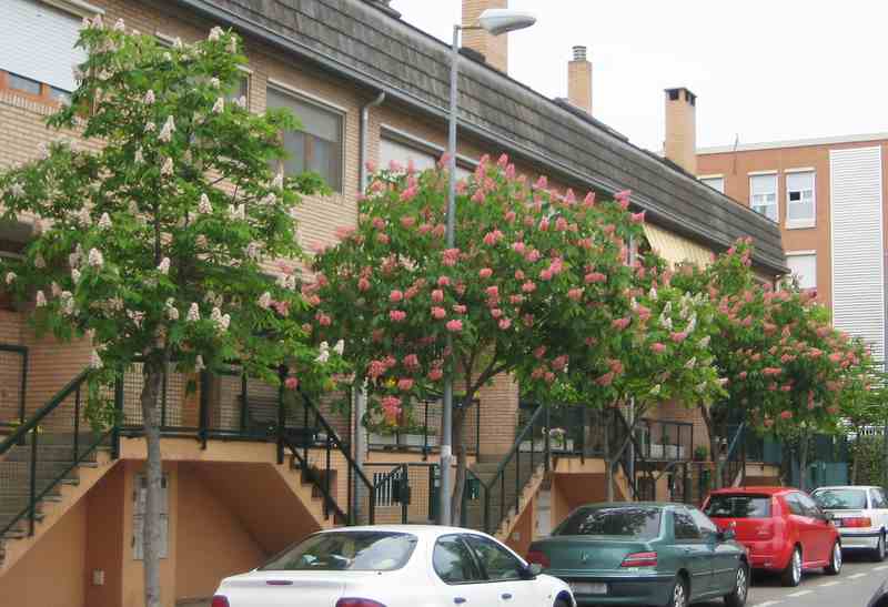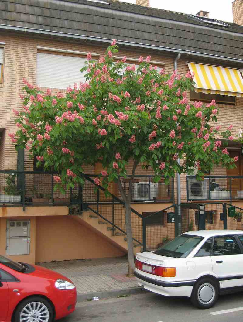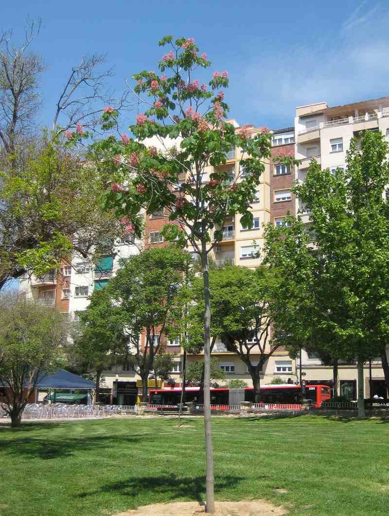 Es un híbrido entre las especies Aesculus hippocastanum x Aesculus pavia.